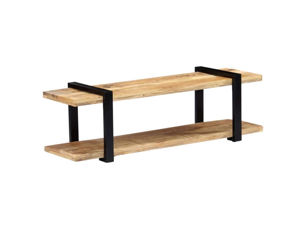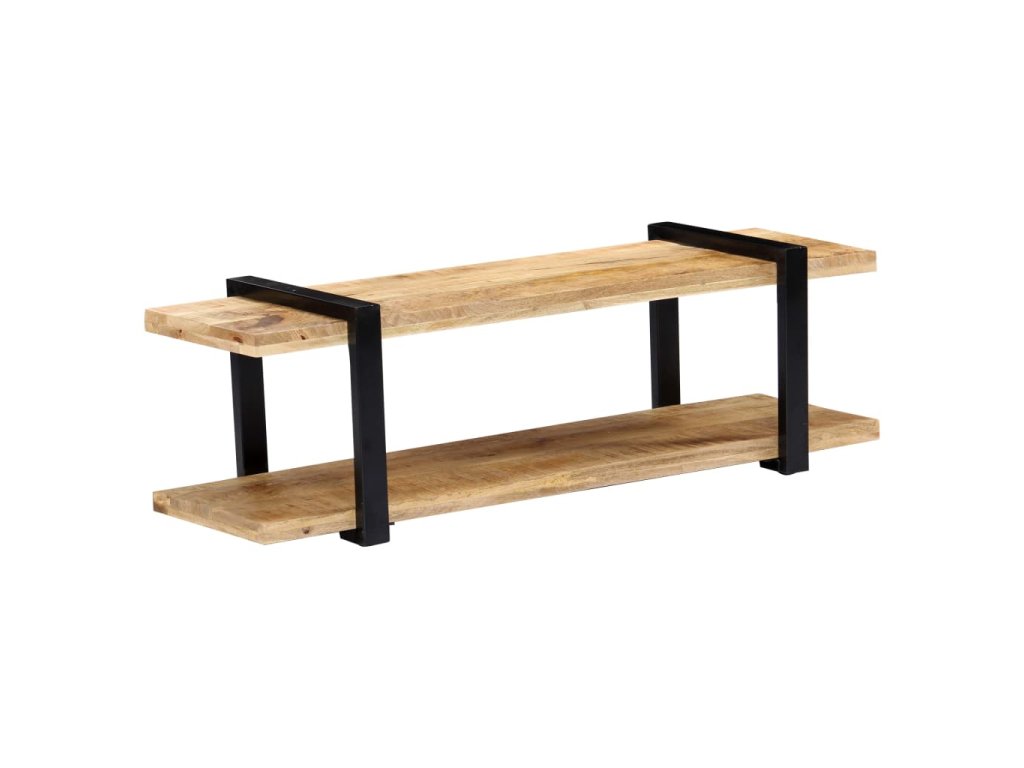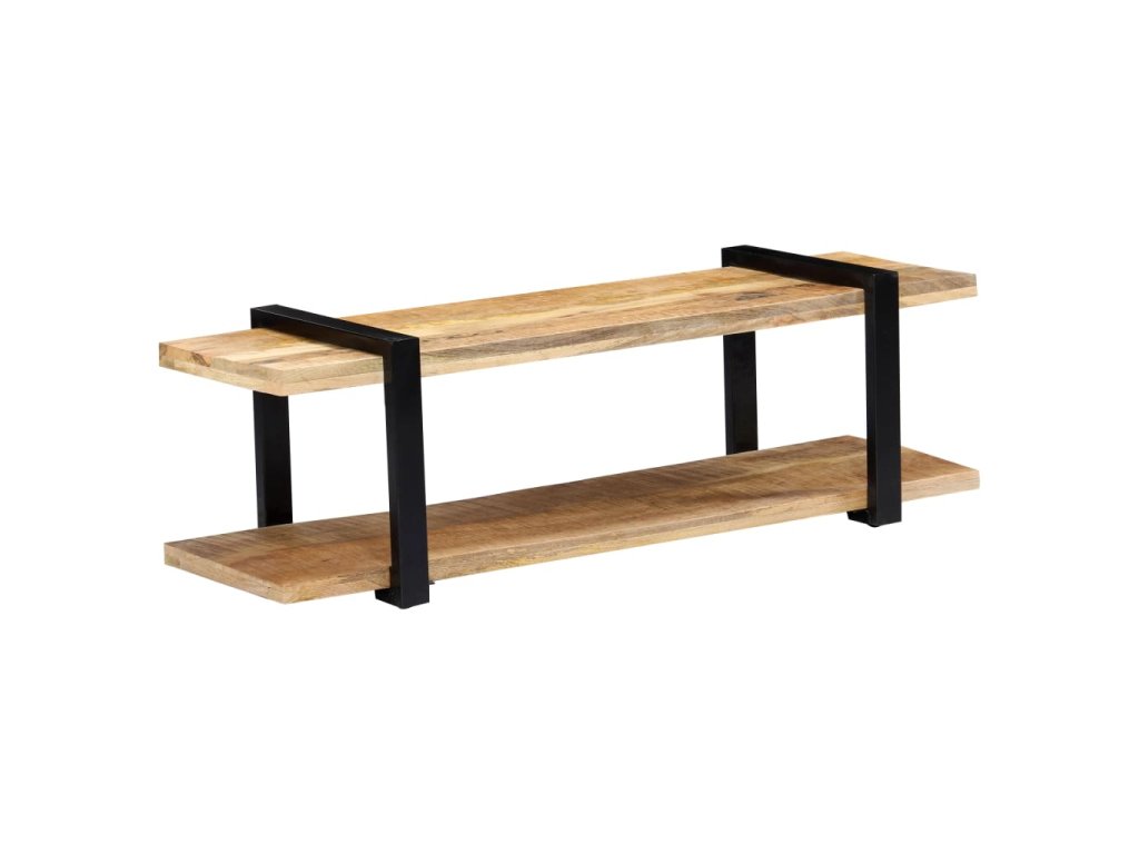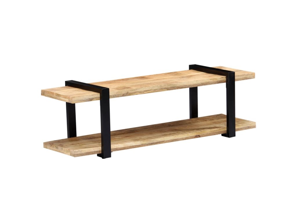 Stolek pod TV je vyrobený z masivního mangovníku, který má husté a robustní tvrdé dřevo, jehož povrch se vyznačuje krásnými hnědými či zlatými pruhy a liniemi. Každá fáze výrobního procesu se provádí s mimořádnou péčí, ať už se jedná o leštění, natírání anebo lakování. Zručné řemeslné zpracování a nádherná kresba dřeva činí každý kus nábytku jedinečným a lehce odlišným od ostatních. Nohy z železa s práškovým nástřikem dodávají TV skříňce na stabilitě. Spodní polička vám poskytne ideální místo, kde si úhledně uspořádat své DVD přehrávače, herní konzole, satelitní zařízení a mediální nosiče.