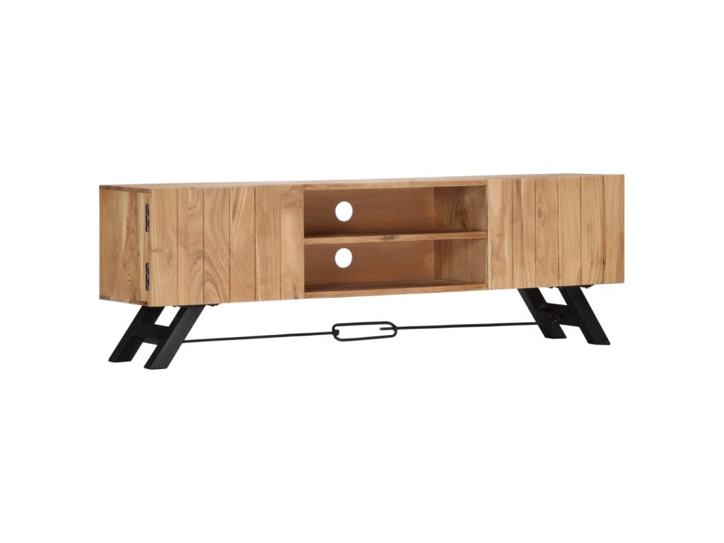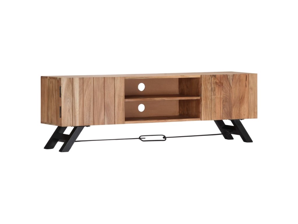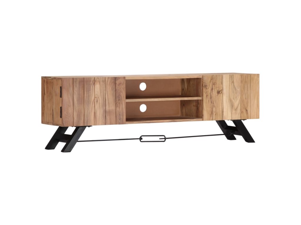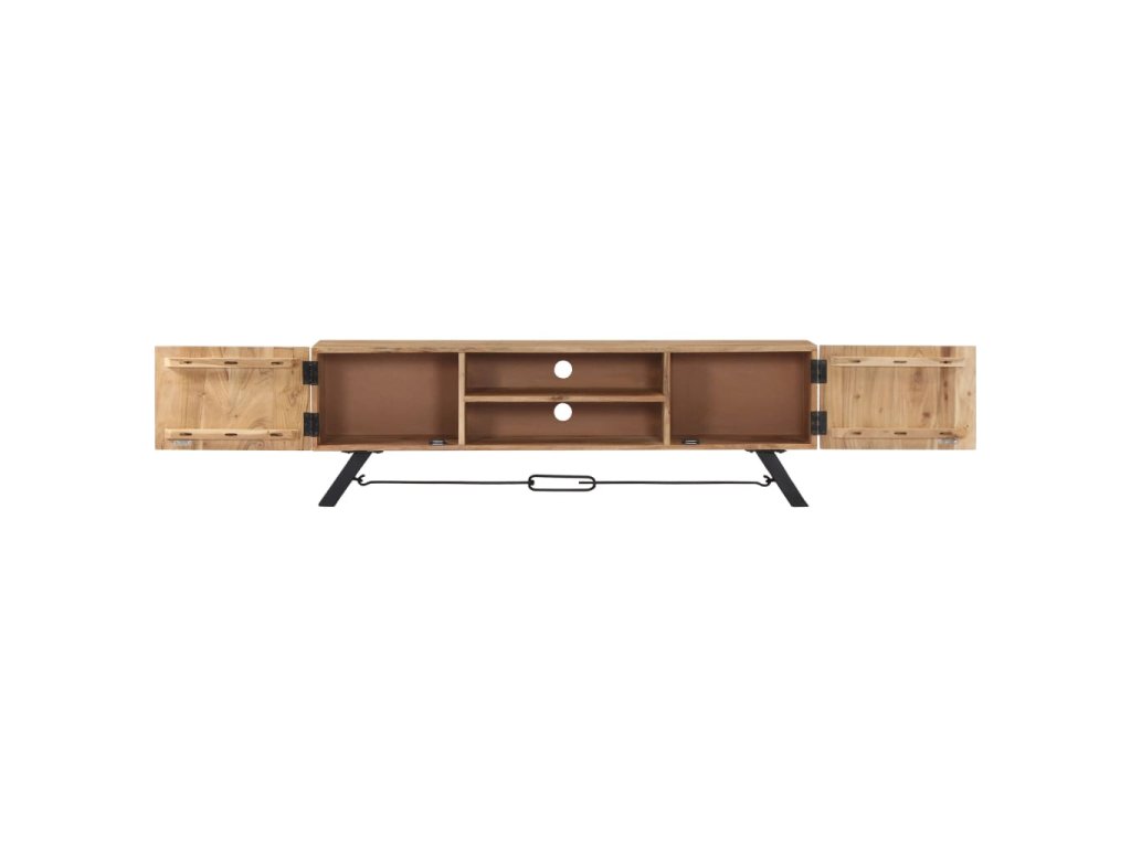 Odkládací skříňka je vyrobena z masivního akáciového dřeva s povrchovou úpravou, které vděčí za svůj překrásný vzhled. Kromě půvabného designu se může pochlubit také výjimečnou stabilitou, odolností a estetičností. Skříňka je navíc celá ručně vyrobená a elegantní kresba dřeva činí každý kus nábytku zcela jedinečným a lehce odlišným od ostatních. Stolek pod televizi disponuje 2 přihrádkami a 2 zavíracími skříňkami, které vám poskytnou spoustu místa, kde si můžete uspořádat svá multimediální zařízení, knížky, boty a nejrůznější další věci.