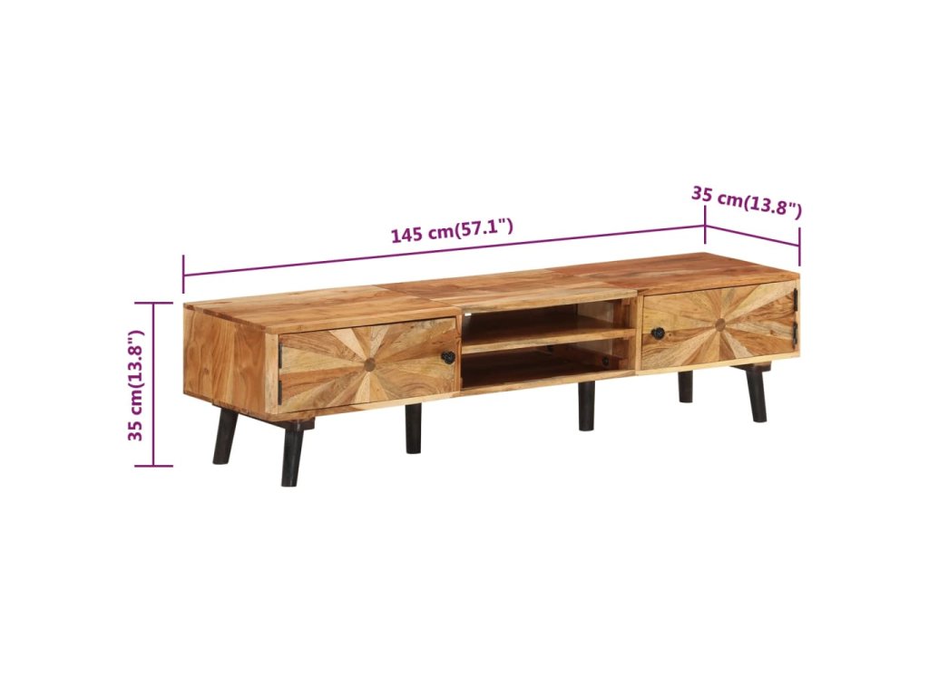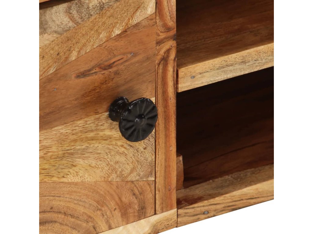 Hifi skříňka je vyrobena z masivního akáciového dřeva, tropického tvrdého dřeva, které je odolné vůči povětrnostním vlivům a má dlouhou životnost. Každý krok výrobního procesu je prováděn s největší pečlivostí, ať už se jedná o leštění, natírání nebo lakování. Řemeslné zpracování a krásná kresba dřeva propůjčuje každému kusu nábytku jedinečný a od ostatních lehce odlišný charakter. Pevná horní deska je ideální pro umístění vaší TV a stereo systémů, stejně jako dekorativních předmětů, jako jsou vázy nebo pokojové rostliny. Televizní stolek také poskytuje dostatek úložného prostoru pro úhledné uspořádání vašich DVD přehrávačů, herních konzolí, streamovacích zařízení, mediálních nosičů atd.