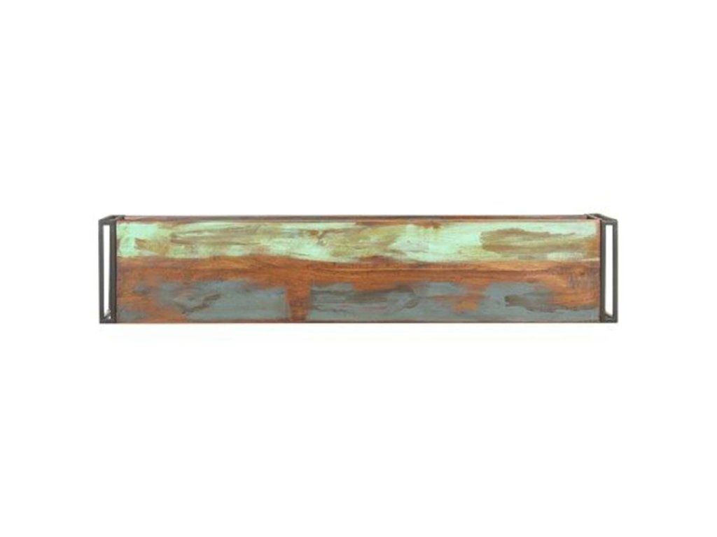 - Materiál: masivní recyklované dřevo se smíšenou barevnou povrchovou úpravou, černě práškově lakované železo