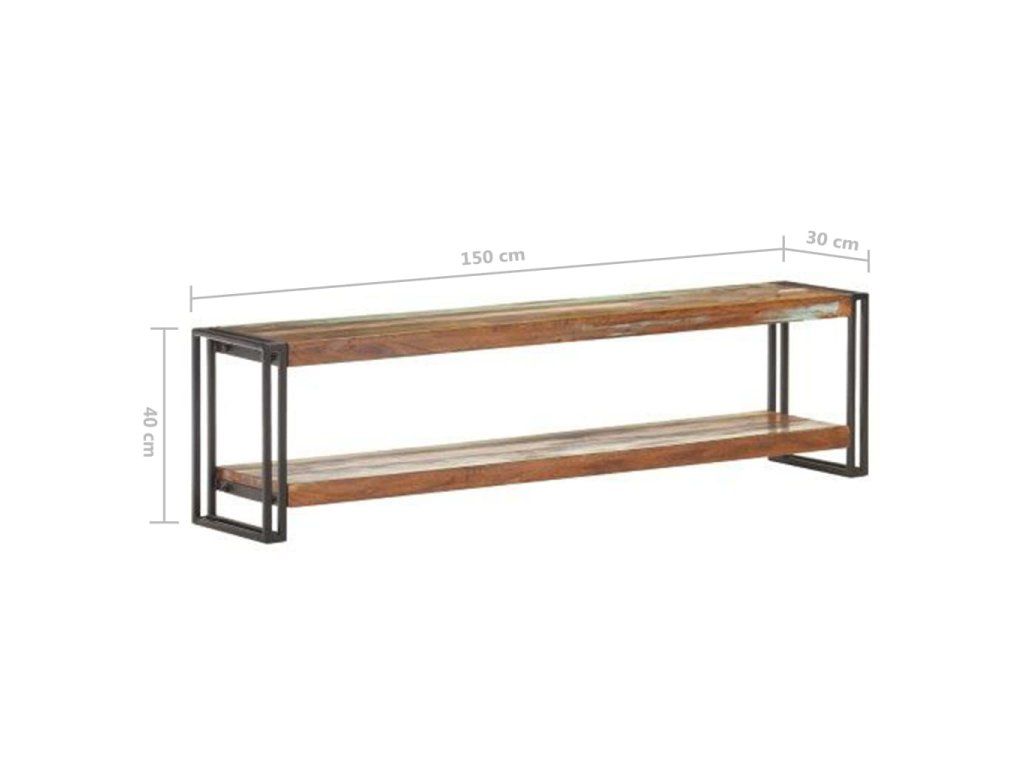 Stereo skříňka je vyrobená z masivního recyklovaného dřeva, které pochází z trámů, podlah a podpěrných nosníků ze starých budov určených k demolici. Sestává tedy z různých druhů dřeva, jako jsou teak, tvrdé dřevo, tropické dřevo, mangovník apod. Recyklované dřevo tak nabývá vlastností všech těchto rozličných typů dřevin. Navíc je již zestárlé, zvětralé a vyschlé, takže se nesmršťuje ani neohýbá. Železný rám zase zlepšuje stabilitu skříňky. Polička vám poskytne spoustu místa, kam si můžete uložit svá multimediální zařízení, knížky a všelijaké další věci.