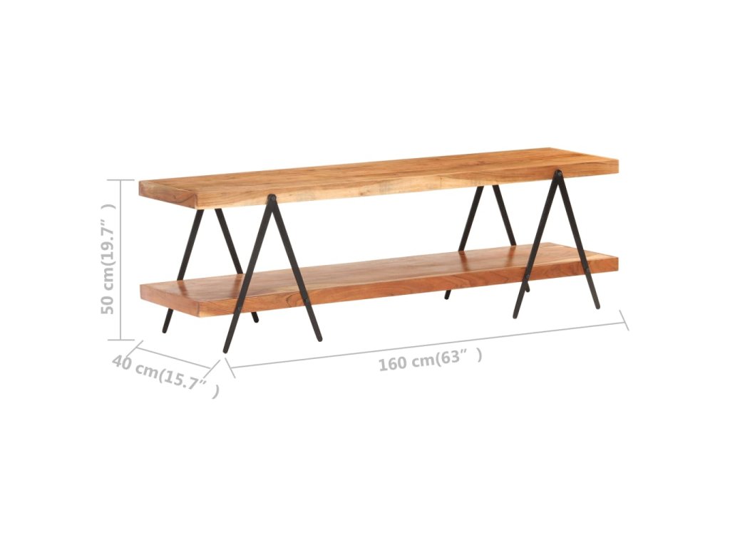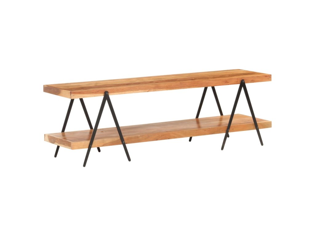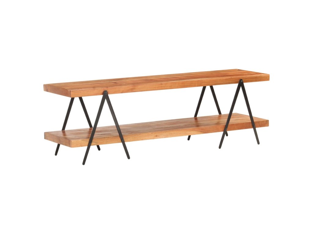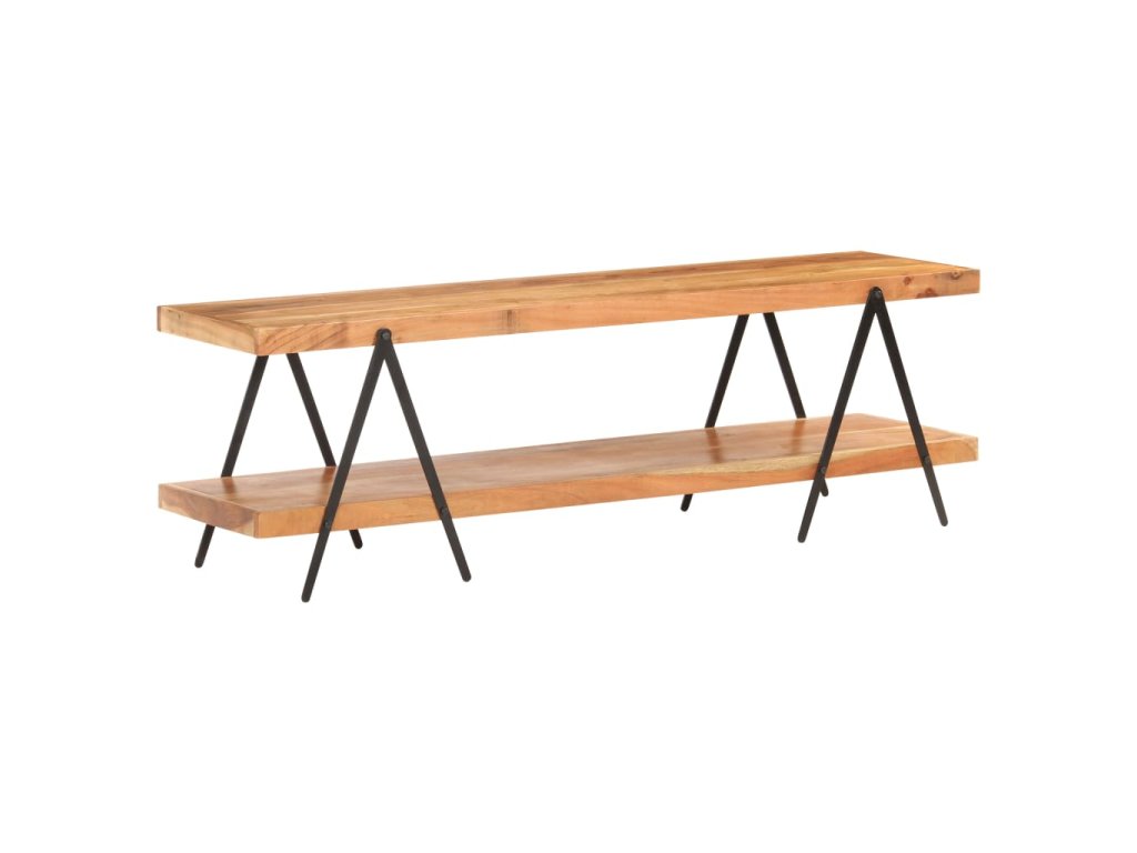 TV stolek je vyrobený z masivní akácie, tvrdého dřeva s hustou kresbou. Tento krásně navržený nízký stolek je stabilní, má dlouhou životnost a atraktivní vzhled. Krásná kresba dřeva a vynikající řemeslné zpracování každému stoku propůjčuje unikátní, lehce odlišný charakter. Hi-fi stolek tvoří 2 prostorné police, kam si můžete uložit vaše multimediální zařízení, knihy a různé další věci. Práškově lakovaný železný rám přispívá k robustní konstrukci a zvyšuje industriální šarm nábytku!