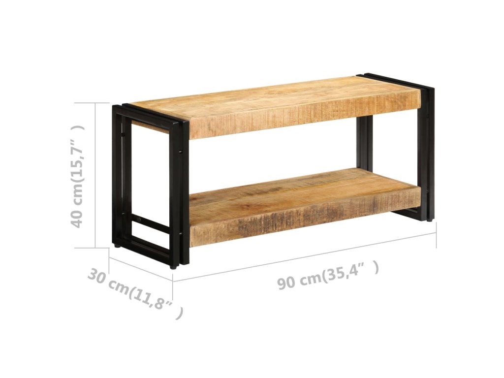 Multimediální skříňka je vyrobena z masivního mangovníku, což je tvrdé dřevo s hustou texturou. Hrubé mangovníkové dřevo je nejen schopné unést značnou váhu, ale výborně také odolává opotřebení a působení času. Stolek s překrásným designem je proto stabilní, odolný a příjemný na pohled. Je navíc celý ručně vyrobený a esteticky působivá kresba dřeva činí každý kus nábytku zcela jedinečným a lehce odlišným od ostatních. Železné nohy s práškovým nástřikem dodávají televizní skříňce na pevnosti a zároveň umocňují její industriální vzezření. Stolek pod televizi disponuje poličkou, jež vám poskytne spoustu místa, kam si můžete uložit svá multimediální zařízení, knížky, boty a celou řadu dalších věcí.