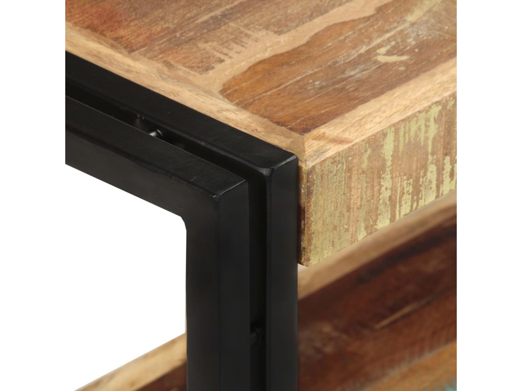 HiFi skříňka je vyrobená z masivního recyklovaného dřeva, které pochází z trámů, podlah a podpěrných nosníků starých budov určených k demolici. Sestává tedy z různých druhů dřeva, jako je teak, tvrdé dřevo, tropické dřevo, mangovník apod. Recyklované dřevo tak nabývá vlastností všech těchto rozličných typů dřevin. Navíc je již zestárlé, ošlehané a vyschlé, takže se nesmršťuje ani neohýbá. Práškově lakované železné nohy přispívají jednak k bytelnosti příborníku a jednak zdůrazňují jeho industriální styl. V příborníku je prostorná police, kde najdete dostatek místa pro vaše multimédia, knihy a celou řadu dalších věcí.