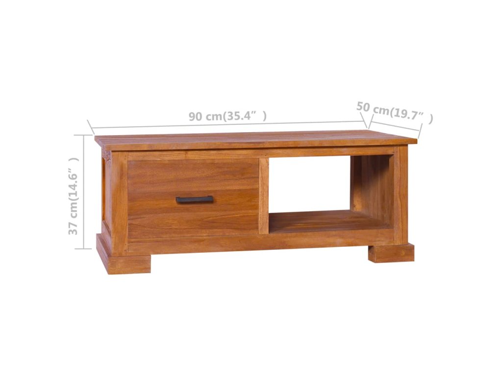 Televizní stolek je zhotovený z teakového tvrdého dřeva, které již prošlo procesem smršťování, bylo uměle vysušené a poté jemně a dohladka obroušené. Teakové dřevo je oceňované pro svou výjimečnou pevnost, a proto je zdaleka nejvhodnějším materiálem pro výrobu nábytku. Jedná se o skvělou volbu, pokud si chcete pořídit vybavení, které vám bude sloužit dlouhá léta. TV skříňka má 1 zásuvku a 1 otevřenou přihrádku, takže vám poskytne spoustu úložného prostoru pro přehlednou organizaci vašich potřeb.