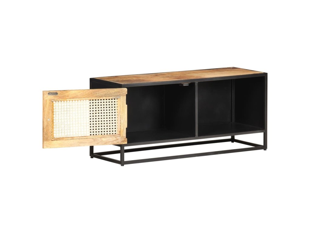Mangovník je tropické tvrdé dřevo, které jednak unese značnou váhu a jednak výborně odolává působení času a neopotřebovává se. Precizní řemeslné zpracování a nádherná kresba dřeva dává každé Hi-Fi skříňce odlišný charakter, takže nenajdete dva zcela stejné. Stereo skříňka nabízí spoustu úložného místa, můžete si do něj tedy přehledně uložit vše potřebné nebo si na něm vystavit různé dekorace. Železné nohy zajišťují stabilitu a odolnost skříňky. TV skříňka má navíc dekorativní ručně pletený vzor z přírodního rákosu na dvířkách, který ji propůjčuje rustikální šarm.