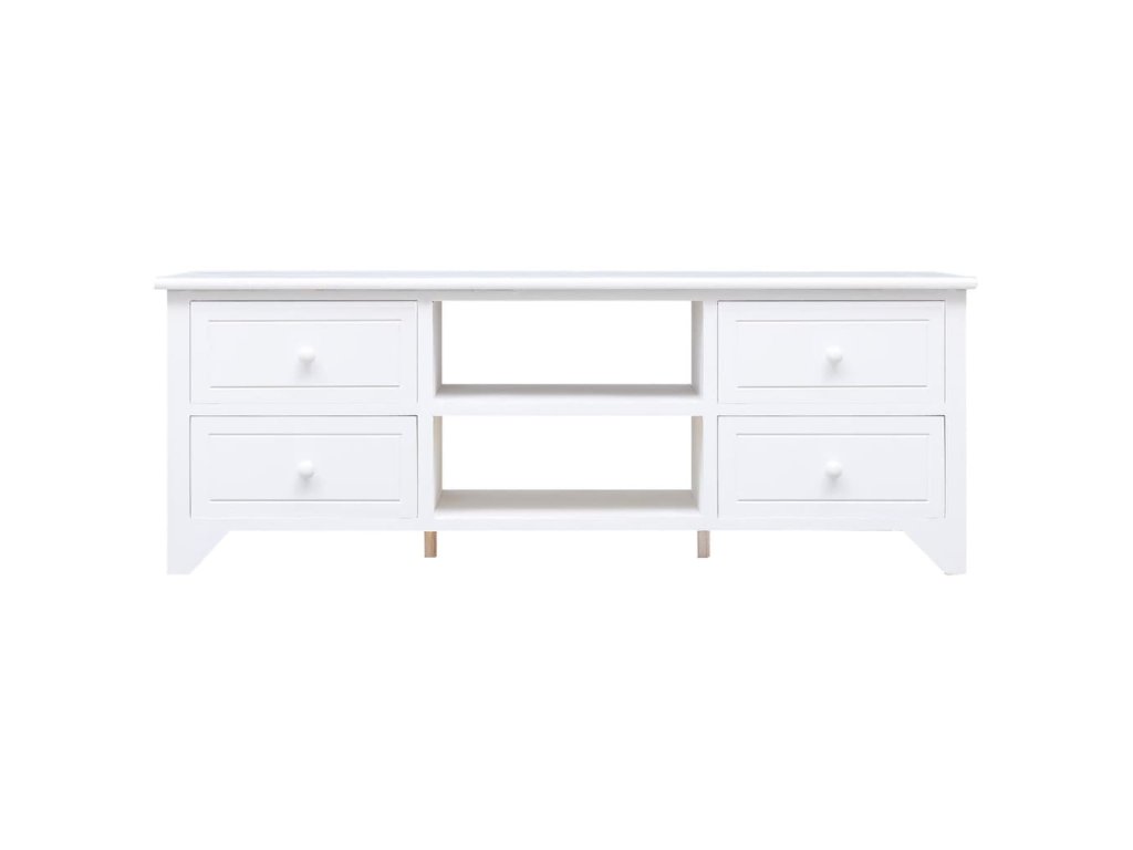 Tato TV skříňka je zhotovena z masivního dřeva pavlovnie a MDF a je to dokonalý nadčasový doplněk do vašeho domova. Najdete v ní 2 přihrádky a 4 zásuvky, kam si můžete uložit nejrůznější maličkosti a uspořádat si v nich svá multimediální zařízení, herní konzole a časopisy.