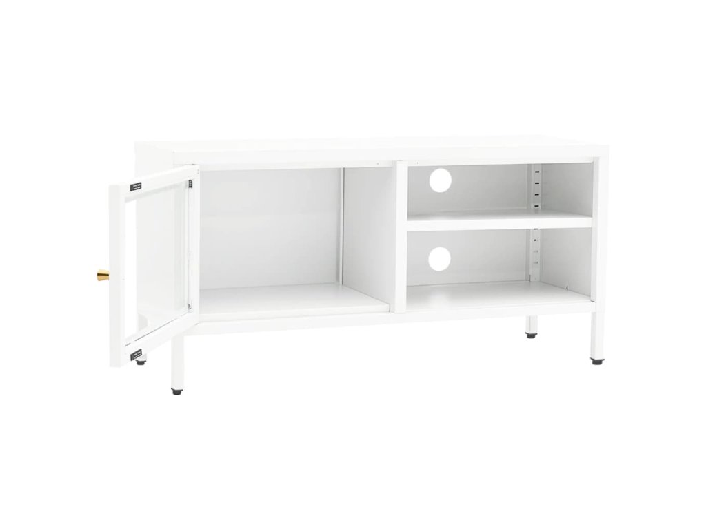 Konstrukce tohoto TV stolku je z oceli, takže je pevný a odolný a zajišťuje roky používání. Přihrádka za skleněnými dvířky a otevřené police nabízí dostatek úložného prostoru pro přehledné uschování a vystavení vašich knih, časopisů, DVD, váz a dalších dekorativních předmětů na dosah ruky. Police se dá nainstalovat v různých úrovních, máte tak tedy možnost měnit velikost úložného prostoru. Nohy dodávají skříňce mimořádnou stabilitu a lze je snadno nastavit na požadovanou výšku. Skříňka se navíc snadno čistí vlhkým hadříkem.