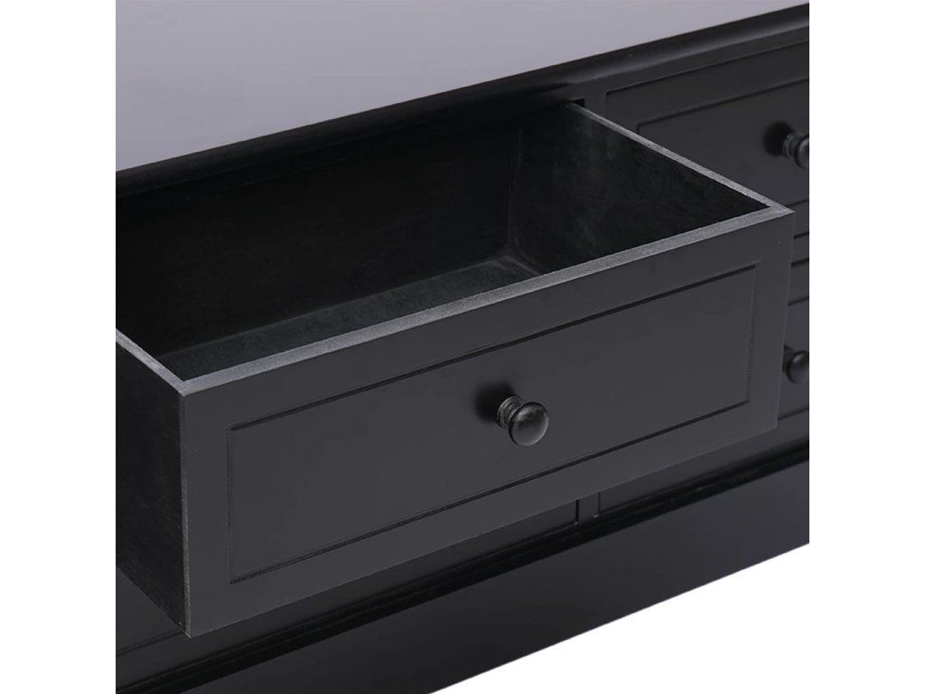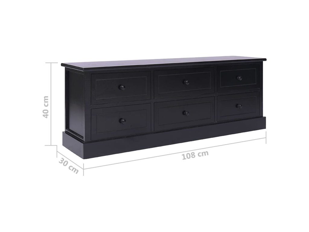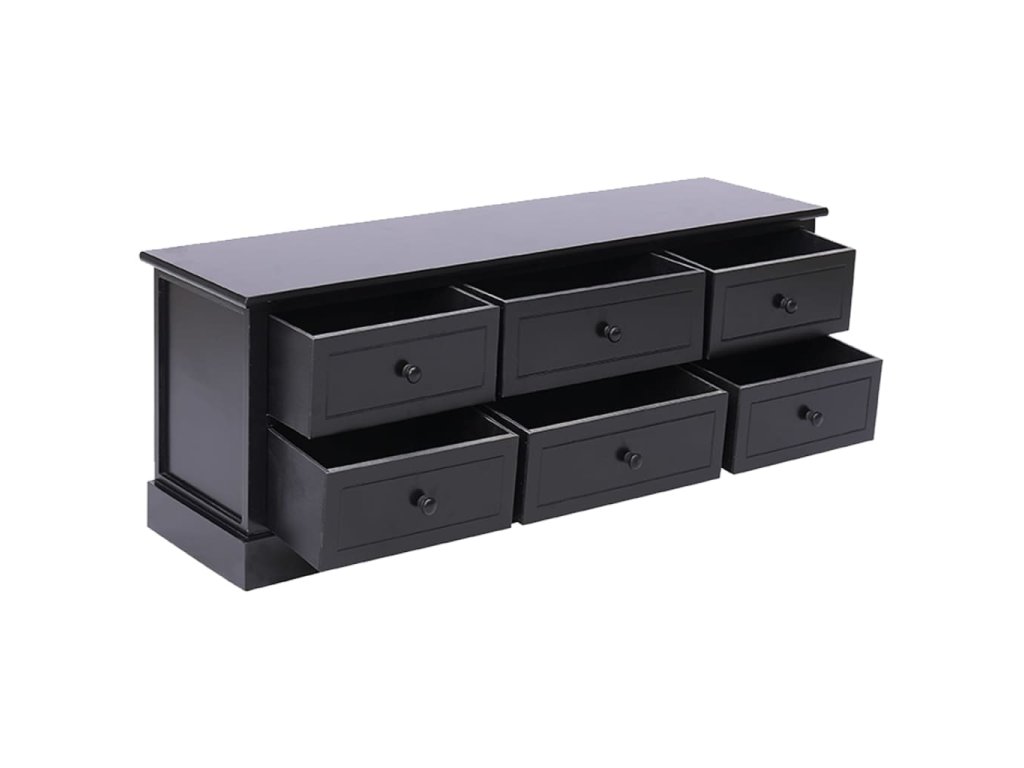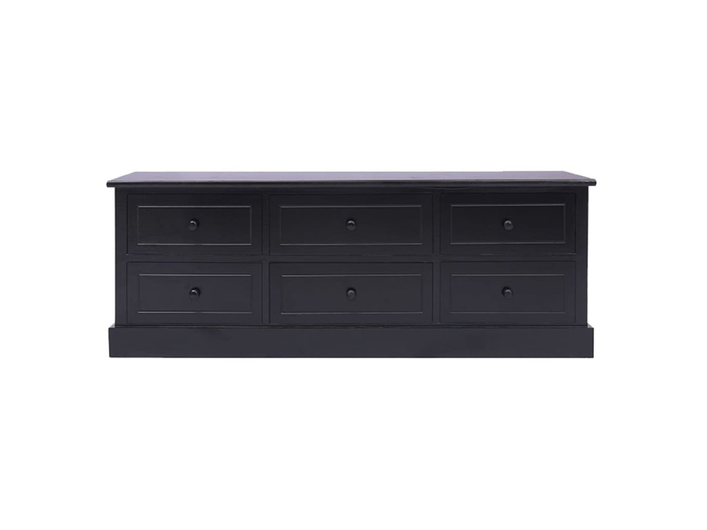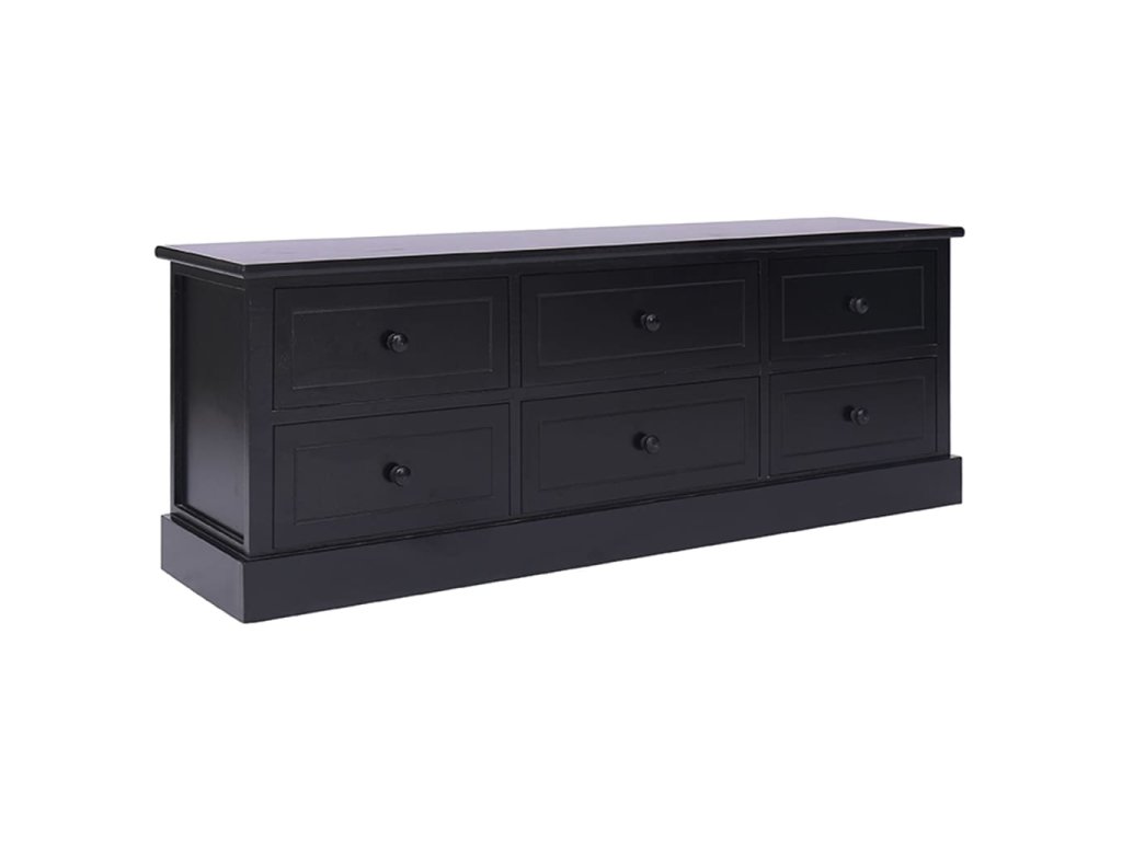 TV skříňka je vyrobena z kvalitního dřeva pavlovnie a topolu, je vysoce odolná a snadno se čistí. Pevná deska je ideální pro umístění TV a stereo systémů, stejně jako dekorativních předmětů, jako jsou vázy nebo rostliny v květináčích. Navíc je vybavena 6 zásuvkami s hladkým otevíráním, které poskytují dostatek úložného prostoru pro vaše osobní věci. Tato skříňka udrží váš obývací pokoj, ložnici nebo jiné obytné prostory uklizené a bez nepořádku.