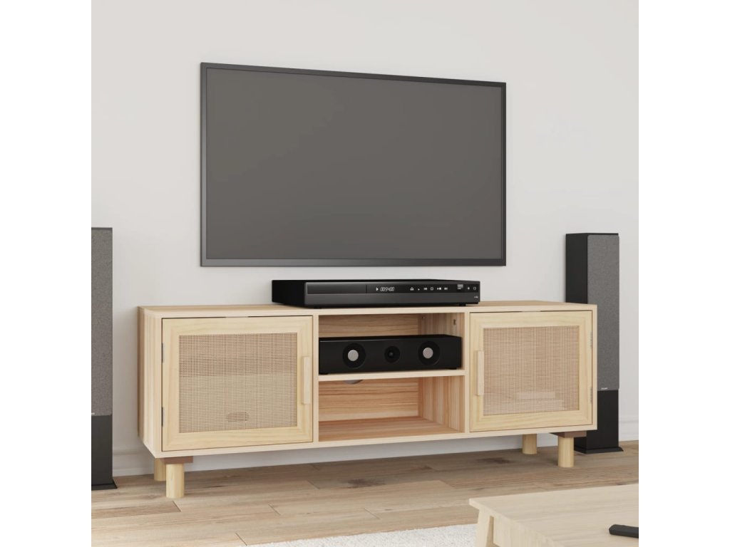 - Nohy z masivní borovice: Dřevěné nožičky dodávají TV jednotce přirozený a příjemný vzhled a zároveň zajišťují stabilitu. Skvěle se hodí do jakéhokoli interiéru.