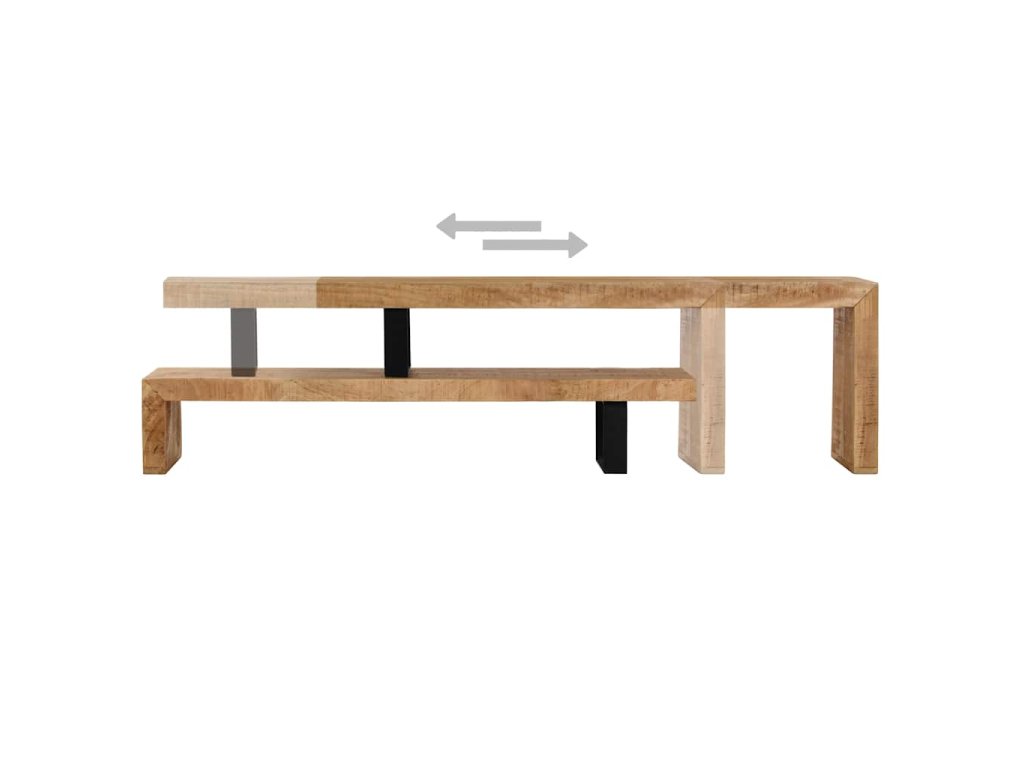 Televizní skříňka je vyrobena z masivního mangovníkového dřeva, je tudíž výjimečně pevná a odolná. Každá fáze výrobního procesu je prováděna s mimořádnou péčí, ať už se jedná o leštění, natírání anebo lakování. Zručné zpracování a esteticky působivá kresba dřeva činí každý kus nábytku naprosto jedinečným a lehce odlišným od všech ostatních. Stolek má odnímatelnou část, takže si jeho délku můžete upravit podle svých potřeb. Montáž je snadná.