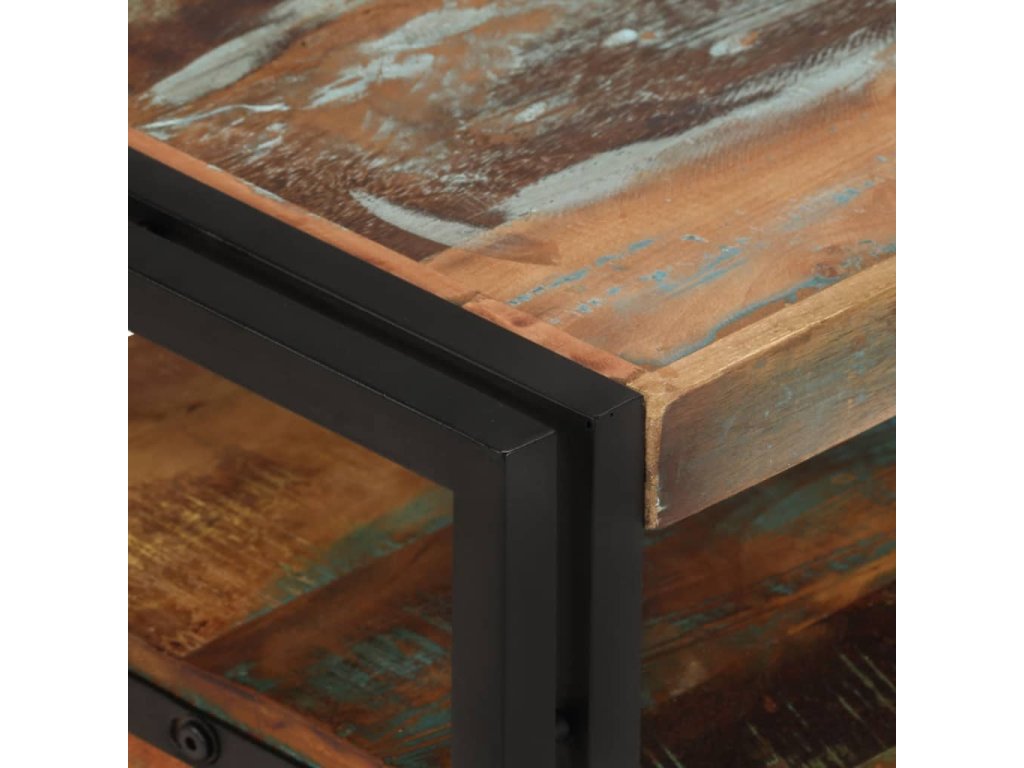 - Materiál: masivní recyklované dřevo + ocelový rám