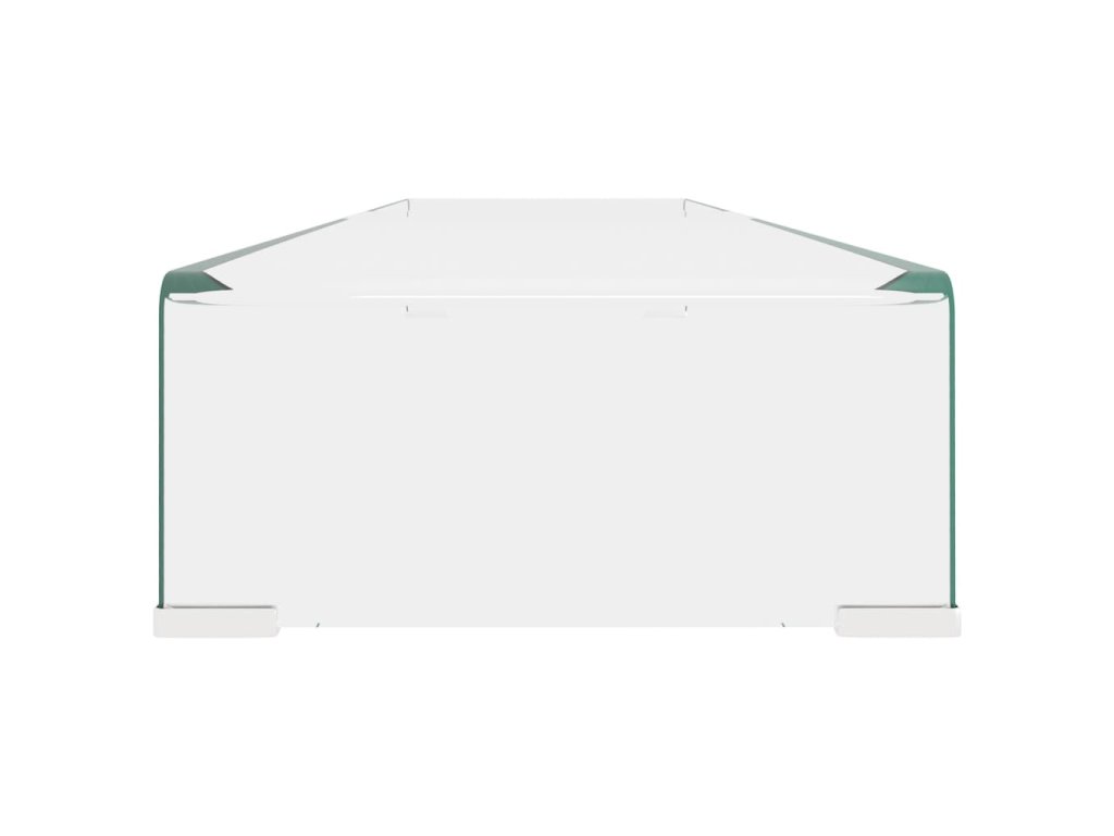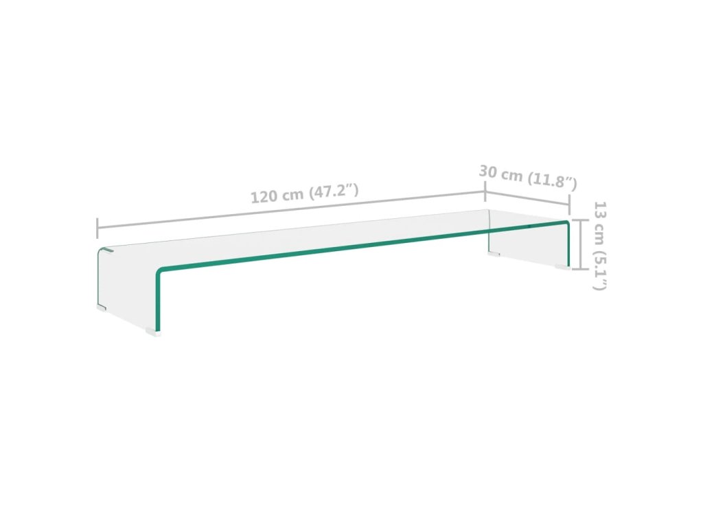 Tuto skleněnou polici můžete použít také jako TV stolek nebo stojan pod monitor vašeho stolního počítače, televizi, notebook nebo jiná multimediální zařízení. Když svůj monitor umístíte na tuto skleněnou polici, budete mít lepší výhled na obrazovku a zároveň se vám bude sedět pohodlněji, což vám pomůže snížit napětí ve vaší šíji a zádech. Úložný prostor pod ní můžete využít pro umístění svého DVD přehrávače, herní konzole, streamovacího zařízení, přijímačů a paměťových nosičů.