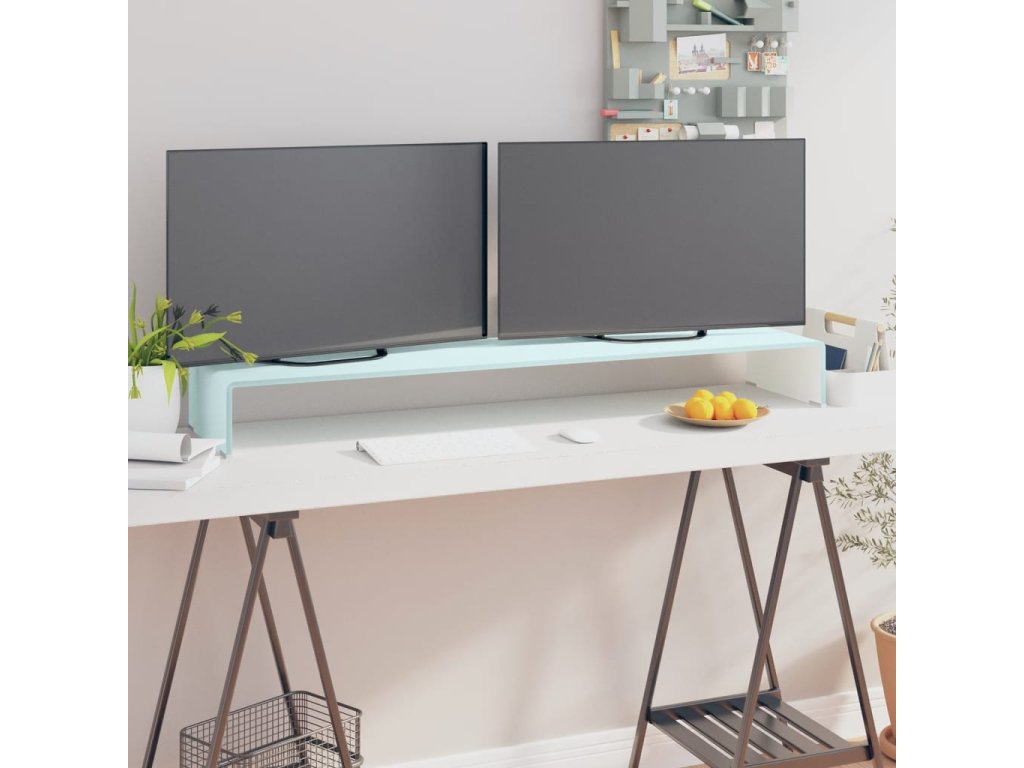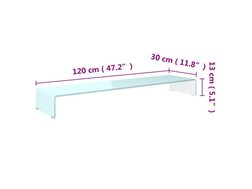 Tuto skleněnou polici můžete použít také jako TV stolek nebo stojan pod monitor vašeho stolního počítače, televizi, notebook nebo jiná multimediální zařízení. Když svůj monitor umístíte na tuto skleněnou polici, budete mít lepší výhled na obrazovku a zároveň se vám bude sedět pohodlněji, což vám pomůže snížit napětí ve vaší šíji a zádech. Úložný prostor pod ní můžete využít pro umístění svého DVD přehrávače, herní konzole, streamovacího zařízení, přijímačů a paměťových nosičů.