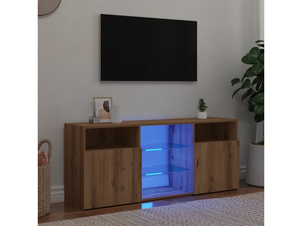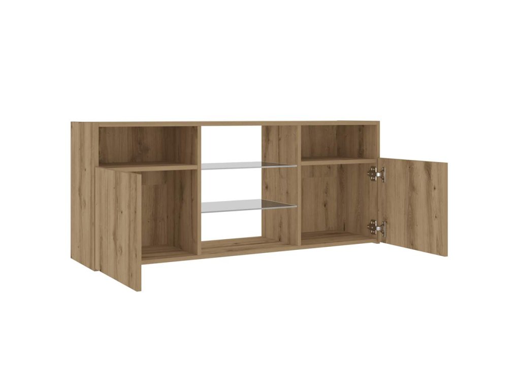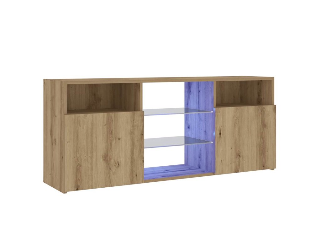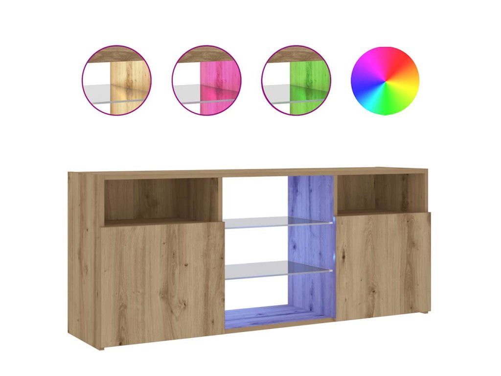 - RGB LED osvětlení: Televizní stolek je vybavený RGB LED světly s několika různými nabídkami, které vám umožní změnit barvu světel nebo nechat světla přizpůsobit automaticky. LED osvětlení podtrhuje moderní vzhled skříňky a zdůrazňuje její trendy styl.