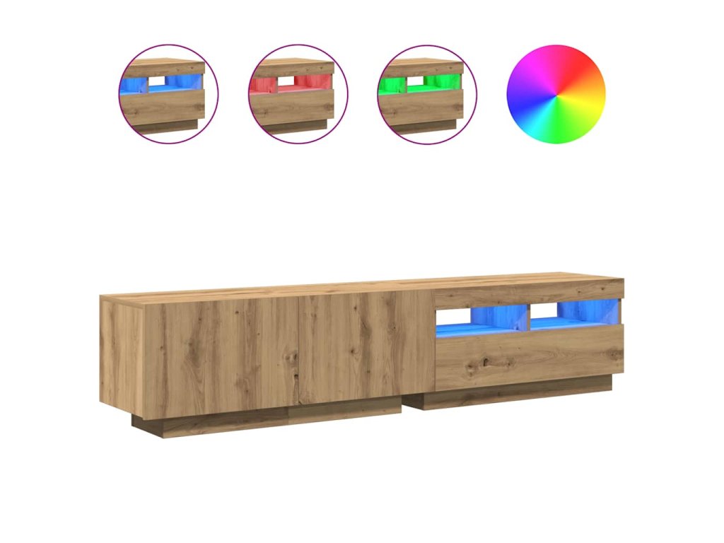 - RGB LED světla pro příjemnou atmosféru: Tento TV stolek je vybaven LED osvětlením, které lze snadno nastavit a vytvořit tak individuální světelnou atmosféru. Umožňuje přizpůsobit režimy, barvy a jas, abyste si vytvořili příjemnou atmosféru svého interiéru.