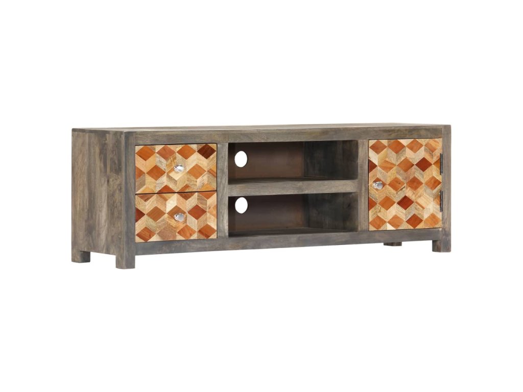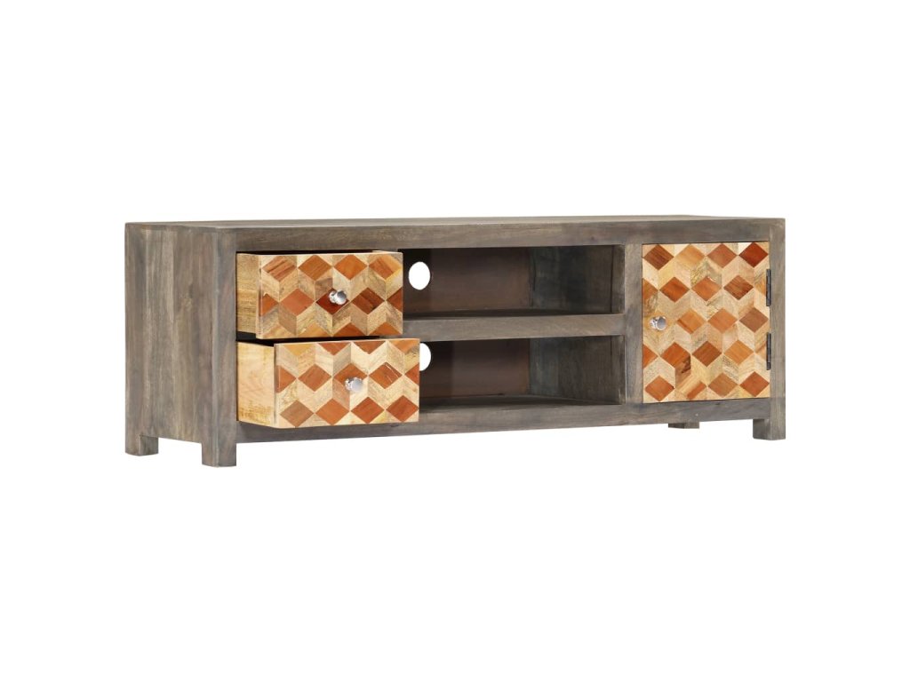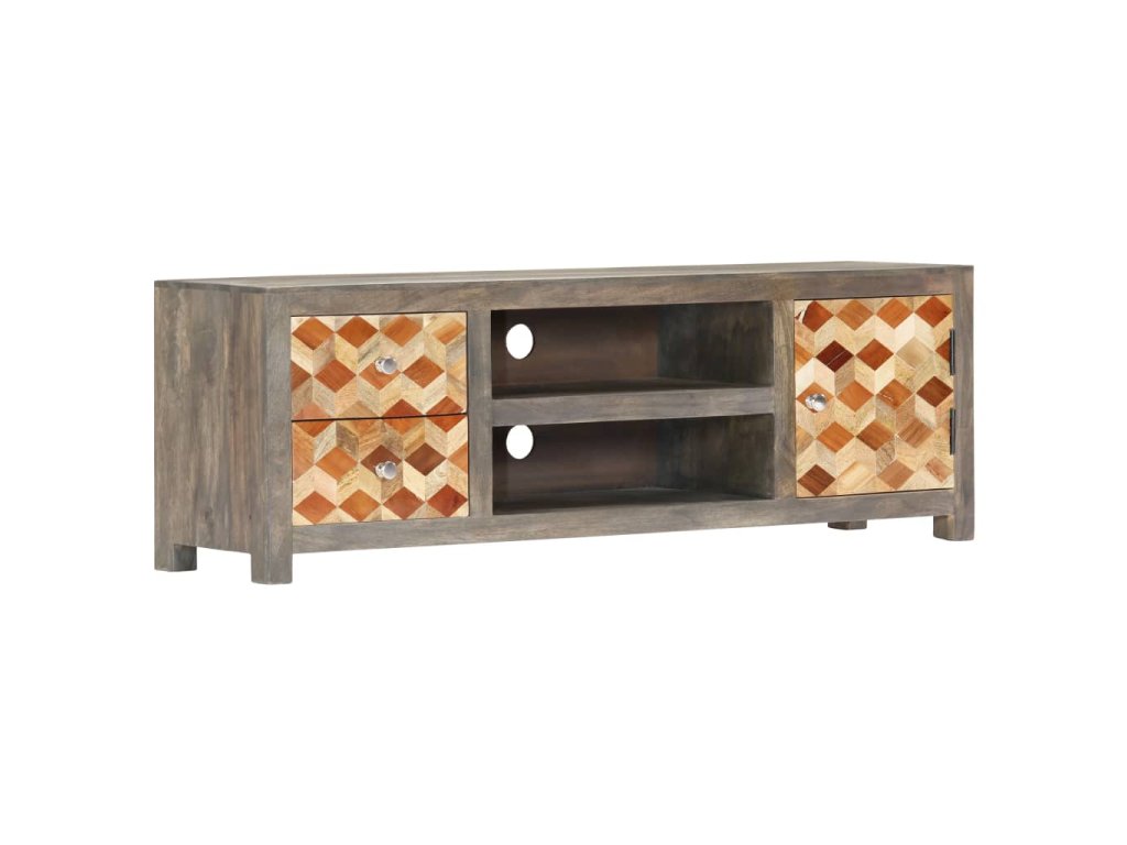 Má 1 dvířka, 2 zásuvky a 2 přihrádky, ve kterých najdete spoustu úložného prostoru. Jedná se tedy nejen o dekorativní, ale i praktický doplněk do vašeho obývacího pokoje či ložnice. Skříňka je vyrobena z masivního mangovníkového dřeva a byla naleštěna, natřena a nalakována, čemuž vděčí za svůj půvabný a rafinovaný vzhled. Její krásu navíc umocňuje motiv ve tvaru diamantu na dveřích a zásuvkách. Sestavení stolku pod televizi je jednoduché a k jejímu čištění vám postačí navlhčený hadřík.
