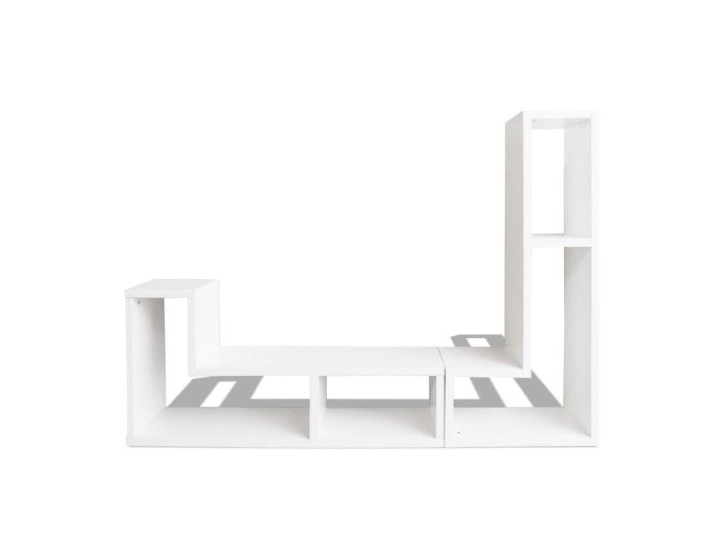 Tento televizní stolek má robustní konstrukci, takže je mimořádně odolný. Televizní stolek se skládá ze 2 polic ve tvaru písmene L, které se dají uspořádat různými způsoby. Na prostorné police se spoustou místa můžete přehledně uložit váš DVD přehrávač, herní konzoli, streamovací zařízení, mediální nosiče, dekorativní předměty atd.