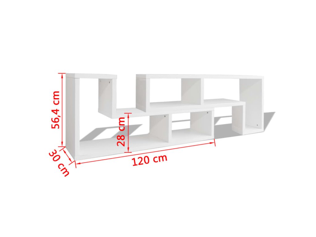 - Rozměry 1 police ve tvaru písmene L: 120 x 30 x 56,4/28 cm (D x Š x V)