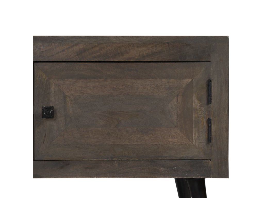 TV stolek je ručně vyroben z mangovníkového dřeva, které je nejen pevné, stabilní a odolné, ale zároveň také krásně vypadá. Zručné řemeslné zpracování přispívá k jeho okázalému retro stylu. Každá fáze výrobního procesu je prováděna s největší pečlivostí, ať už se jedná o leštění nebo lakování. Řemeslné zpracování a překrásná kresba dřeva činí každý kus nábytku zcela jedinečným a lehce odlišným od ostatních. Skříňka disponuje pevnou deskou, na níž si můžete vystavit dekorativní předměty, jako jsou košíky s ovocem nebo vázy. Disponuje 2 poličkami a 2 skříňkami a poskytne vám spoustu prostoru, kde si můžete přehledně uspořádat všechny důležité věci, které si přejete mít po ruce. V zadní části se nachází otvor na vývod kabelů. Ocelové nohy přispívají k bytelnosti stolku a přitom zvýrazňují jeho industriální styl. Montáž je snadná.