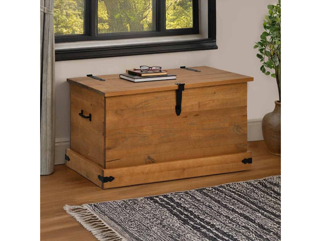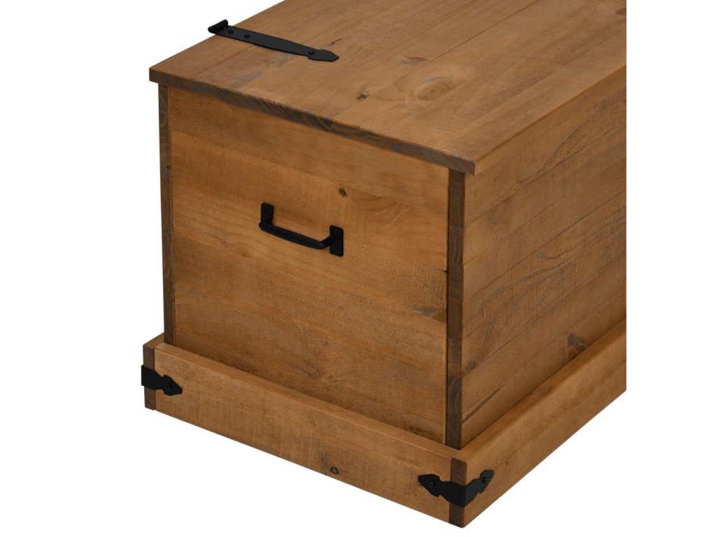 - Široké použití: Díky stabilní horní desce poskytuje truhla bezpečný povrch pro občerstvení, nápoje, vázy, mísy s ovocem nebo jiné dekorativní předměty a může sloužit také jako konferenční stolek nebo boční stolek.