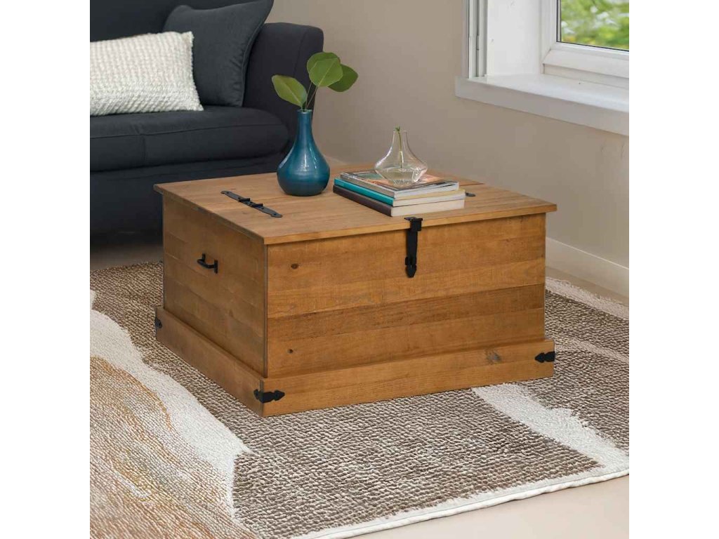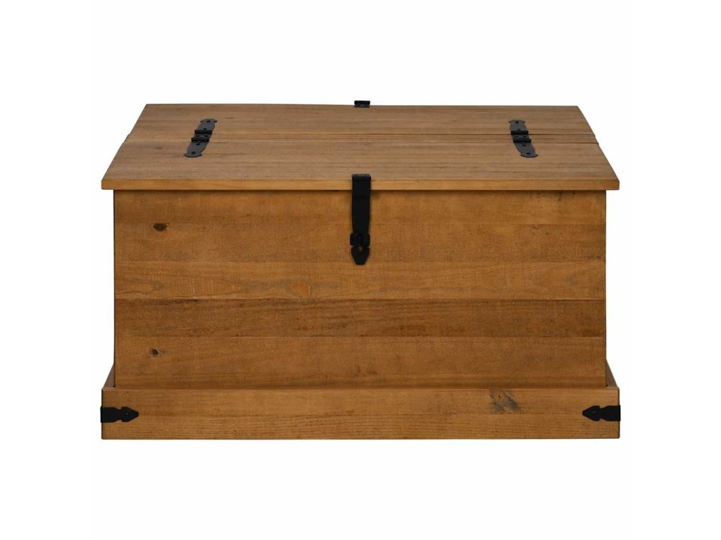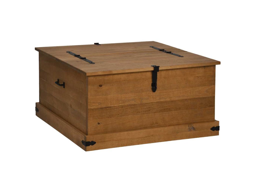 - Široké použití: Díky stabilní horní desce poskytuje truhla bezpečný povrch pro občerstvení, nápoje, vázy, mísy s ovocem nebo jiné dekorativní předměty a může sloužit také jako konferenční stolek nebo boční stolek.