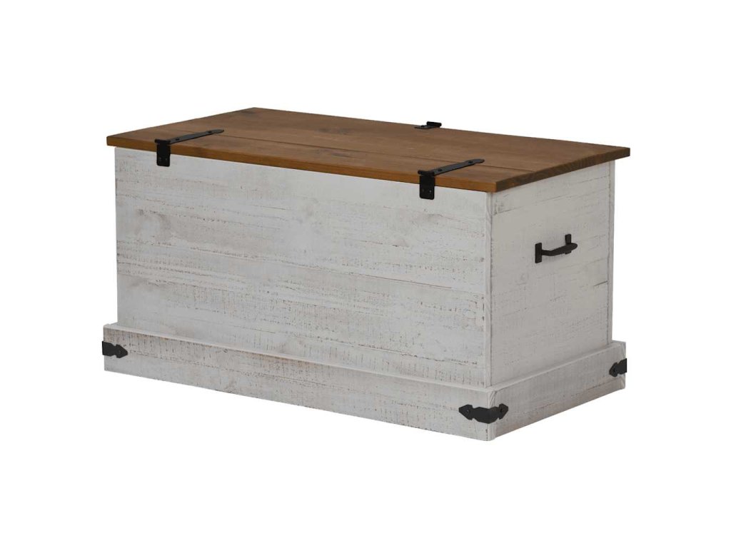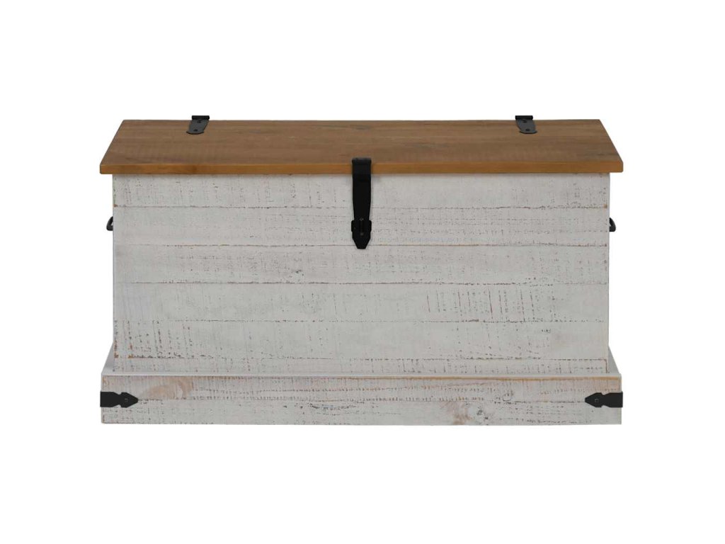 - Široké použití: Díky stabilní horní desce poskytuje truhla bezpečný povrch pro občerstvení, nápoje, vázy, mísy s ovocem nebo jiné dekorativní předměty a může sloužit také jako konferenční stolek nebo boční stolek.