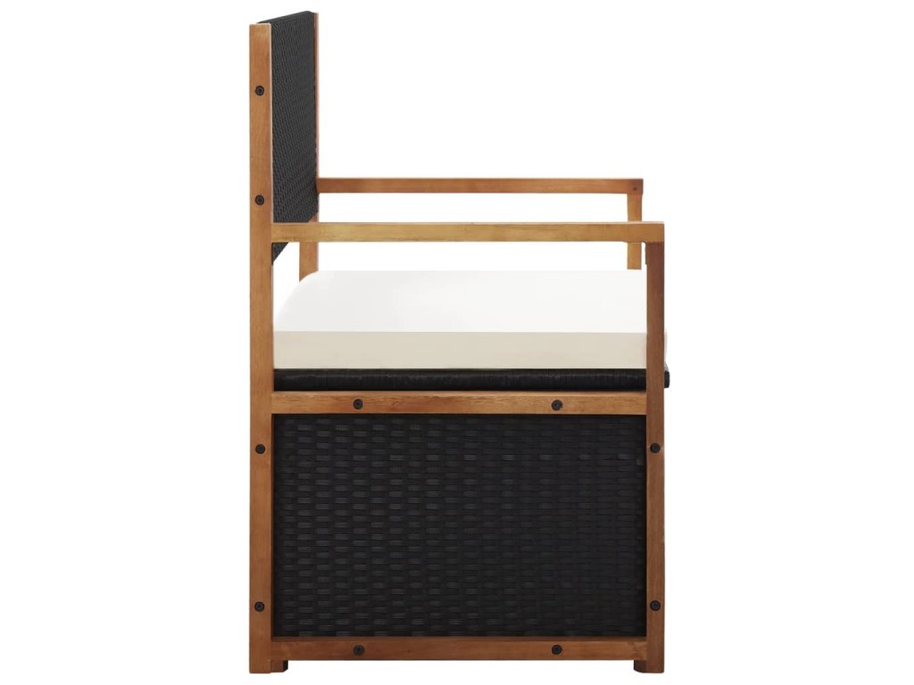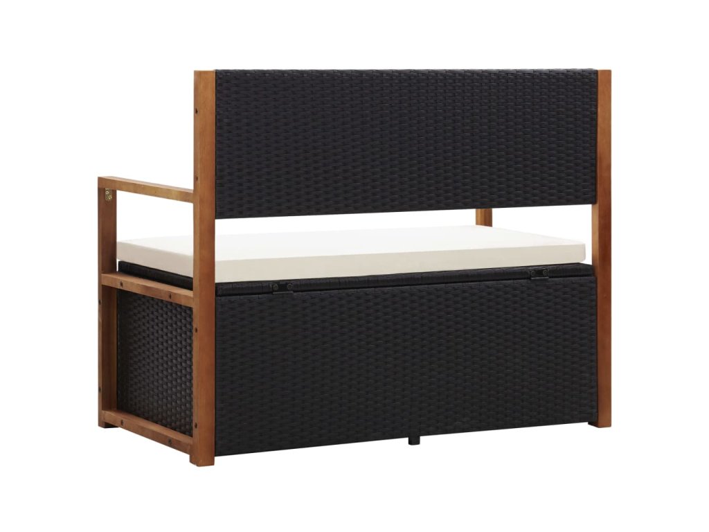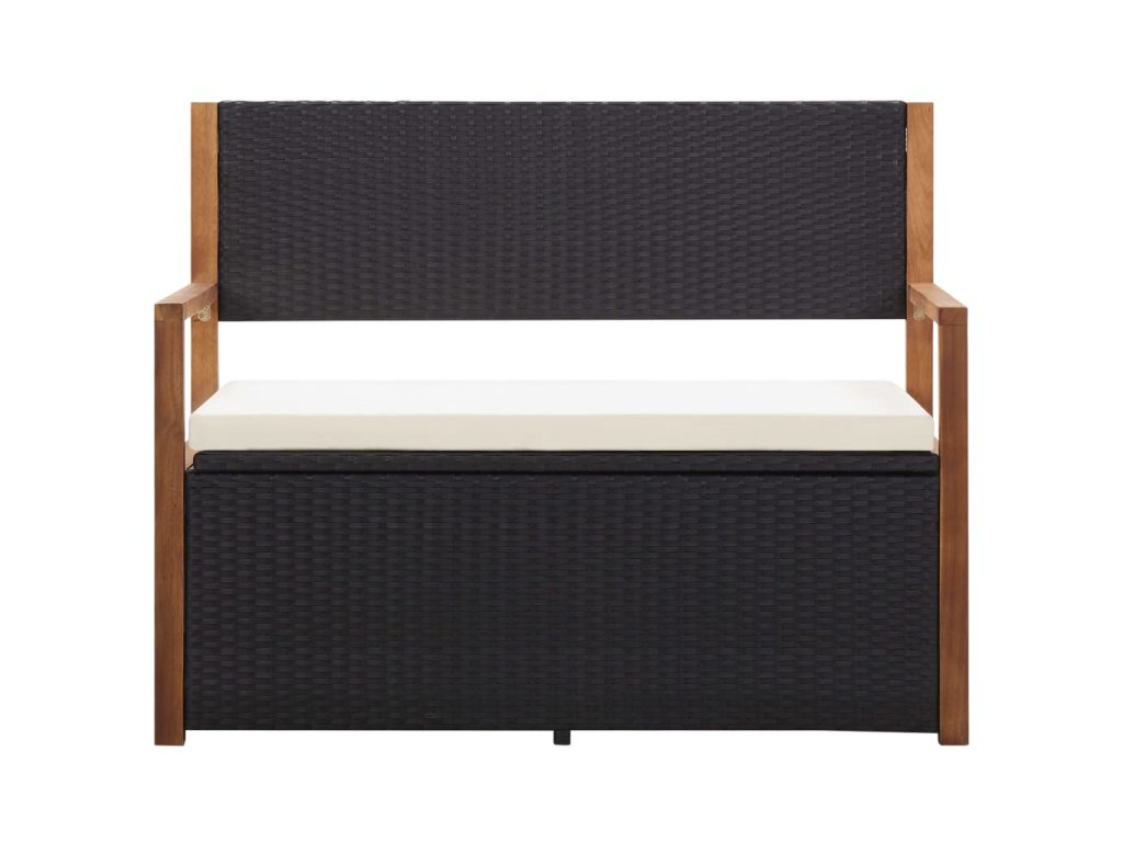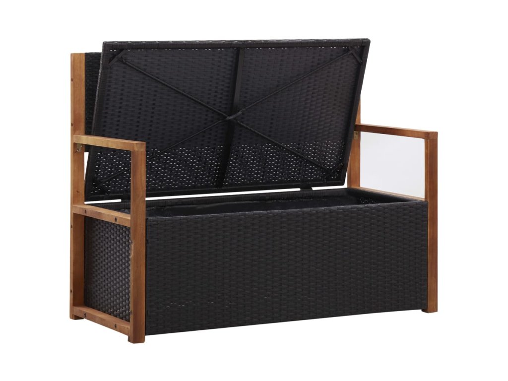 Zahradní lavice je zhotovená z polyratanu, zatímco područky a opěradlo má z masivního akáciového dřeva, které je odolné, nerezaví a skvěle vzdoruje rozmarům počasí. Jedná se tedy o perfektní volbu pro dlouhá léta spokojeného používání. Lavice uvnitř disponuje prostornou úložnou přihrádkou, kde si můžete přehledně uschovat celou řadu věcí na dosah ruky. Tlustá snímatelná poduška na sedák je velmi pohodlná.