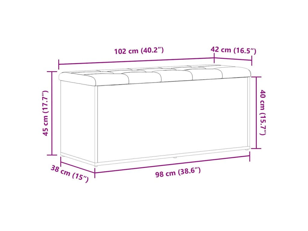 - Celkové rozměry: 102 x 42 x 45 cm (D x Š x V)