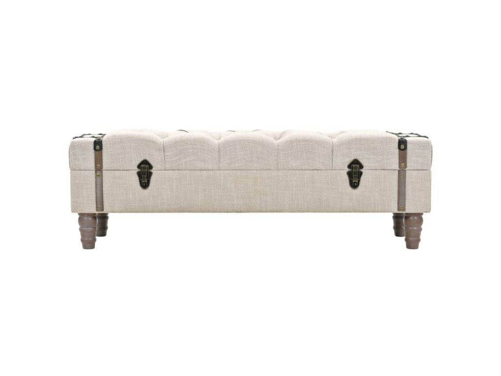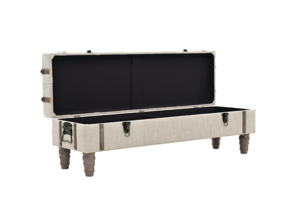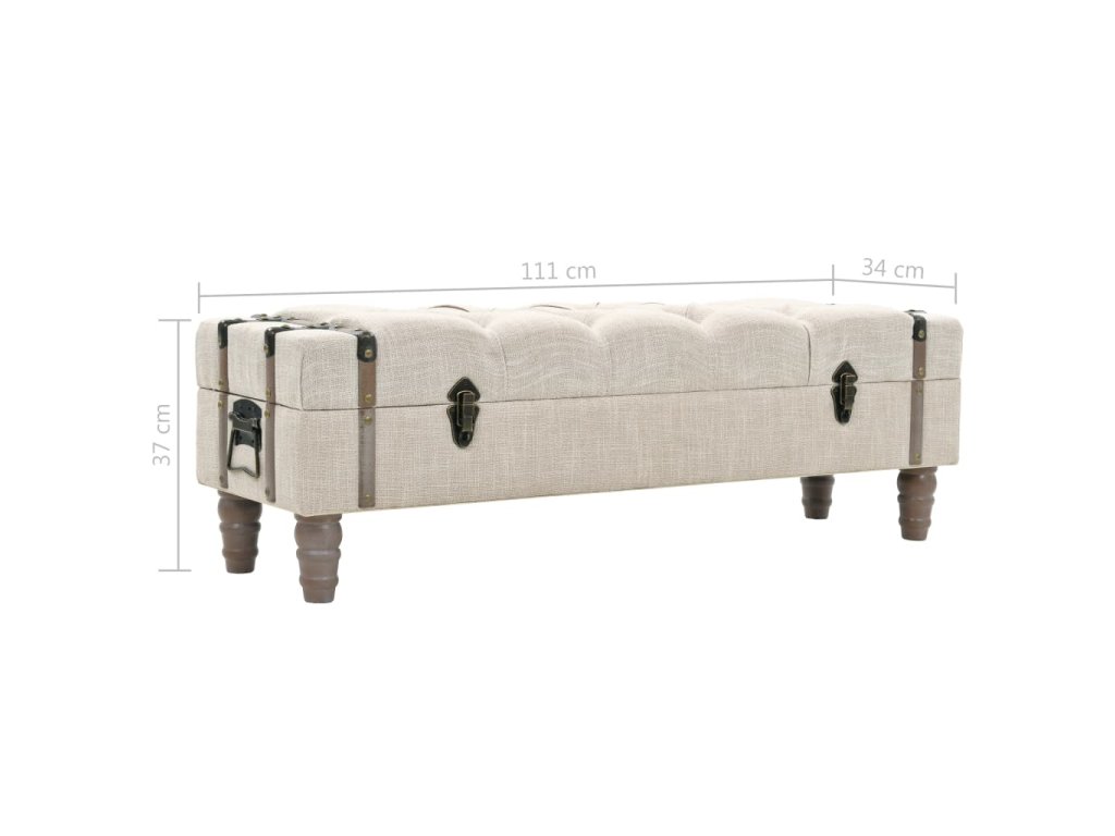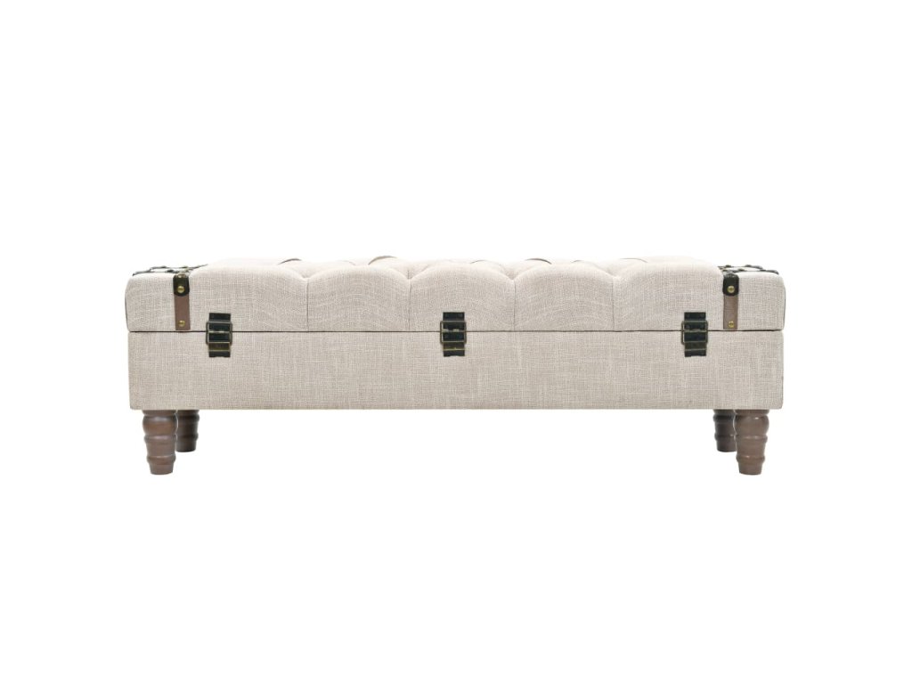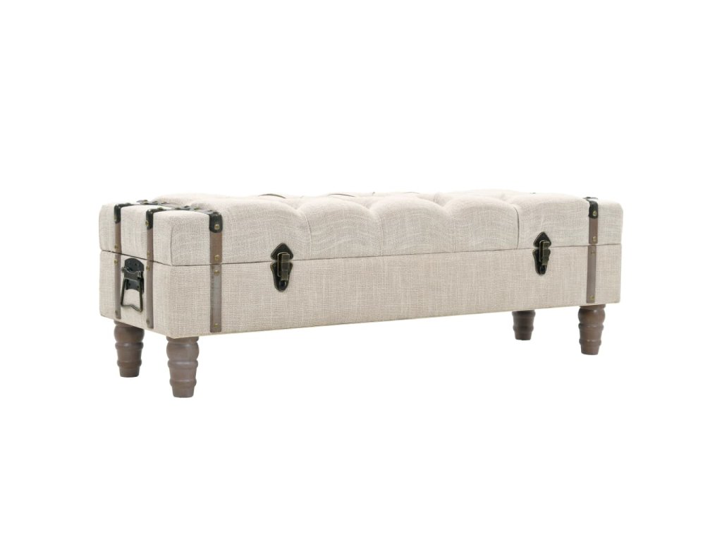 Úložný box je vyroben z masivního jedlového dřeva. Má silné ocelové nohy a polstrovaný sedák s čalouněním z moderní látky. Poskytne vám spoustu prostoru pro ukládání hromady nejrůznějších věcí, které si nepřejete mít na očích, ale chcete je mít po ruce. Díky odolné rukojeti lze tuto lavici se vzhledem kufru snadno přesouvat z pokoje do pokoje.