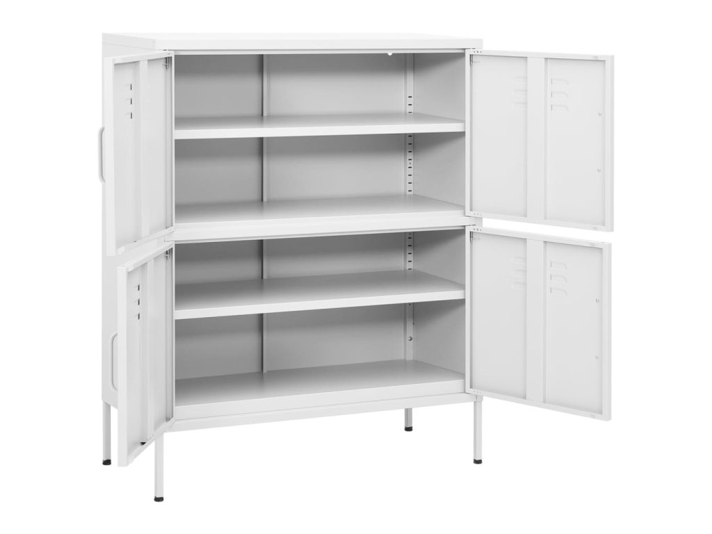 Tato úložná skříň je vyrobena z oceli, takže je pevná a stabilní. Má vyrovnávací nožky a 2 nastavitelné police, které poskytují dostatek prostoru, kde budete mít vaše DVD, multimediální zařízení, knihy a drobné nezbytnosti přehledně uspořádané a po ruce. Skříňka se snadno čistí vlhkým hadříkem.