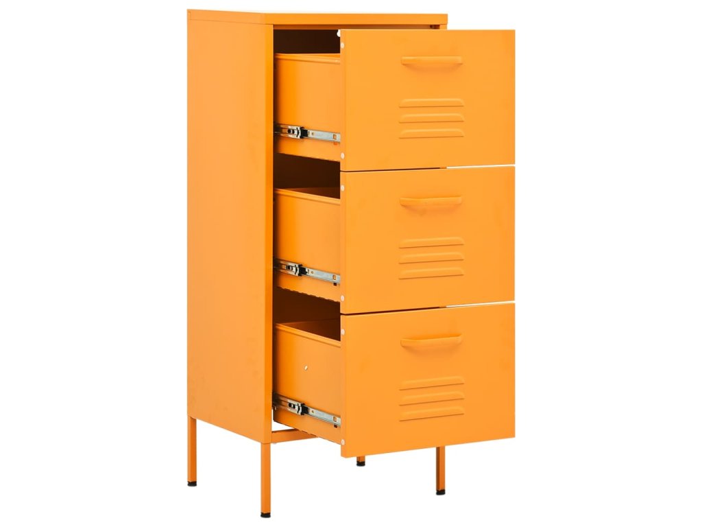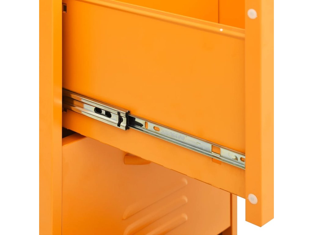 Odkládací skříňka má ocelovou konstrukci, takže toho hodně vydrží a má dlouhou životnost. Nivelační nohy ve spodní části umožňují nastavit výšku podle vašich potřeb. Zásuvky lze zcela vytáhnout, skvěle se proto hodí k přehlednému ukládání nejrůznějších maličkostí, které chcete mít vždy po ruce. Pojezdy zásuvek s kuličkovými ložisky zajišťují hladké otevírání a zavírání, a to i při těžším obsahu.