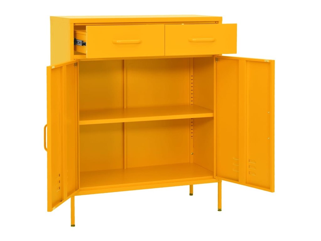Tato úložná skříň je vyrobena z oceli, je tedy pevná a stabilní. Police poskytují dostatek prostoru pro přehledné uložení DVD, multimediálních zařízení, knih a drobných nezbytností, které chcete mít po ruce. Zásuvky s třídílnými pojezdy s kuličkovými ložisky zajišťují plynulé otevírání a zavírání. I při zvýšené zátěži lze tyto zásuvky zcela vysunout. Skříňka se snadno čistí vlhkým hadříkem.