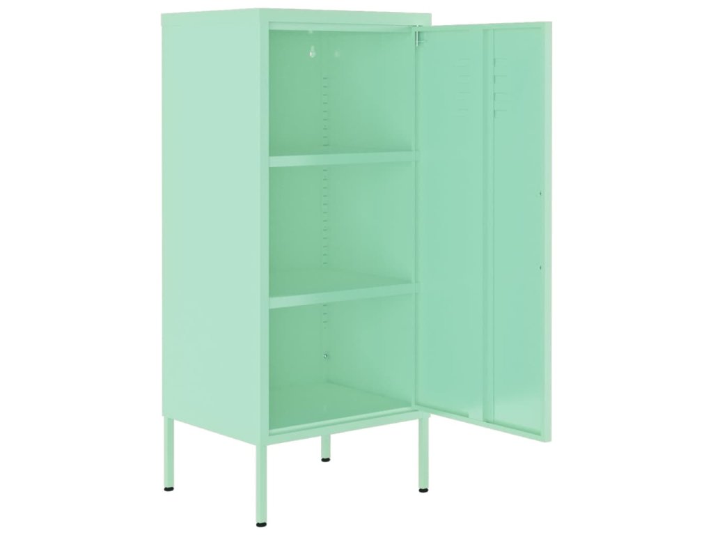 Tato úložná skříň je vyrobena z oceli, takže je pevná a stabilní. Má vyrovnávací nožky a 2 nastavitelné police, které poskytují dostatek prostoru, kde budete mít vaše DVD, multimediální zařízení, knihy a drobné nezbytnosti přehledně uspořádané a po ruce. Skříňka se snadno čistí vlhkým hadříkem.