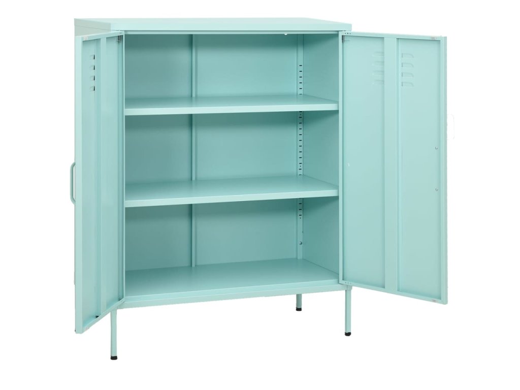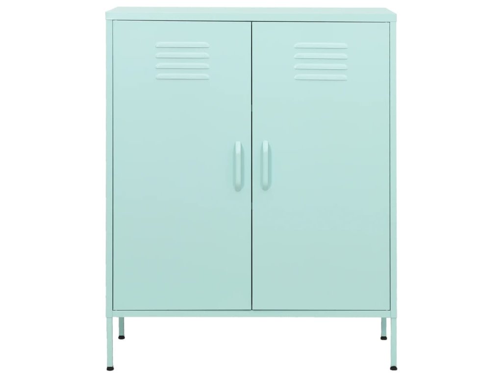 Tato odkládací skříňka s ocelovou konstrukcí je pevná a odolná. Pomocí nožek můžete nastavit výšku podle vašich potřeb. Příborník má 2 dvířka, za kterými najdete nastavitelné police, takže se do nich vejdou předměty různých velikostí, jako jsou knihy, časopisy a další osobní nezbytnosti.