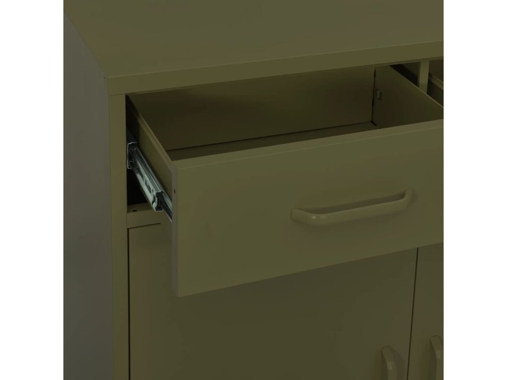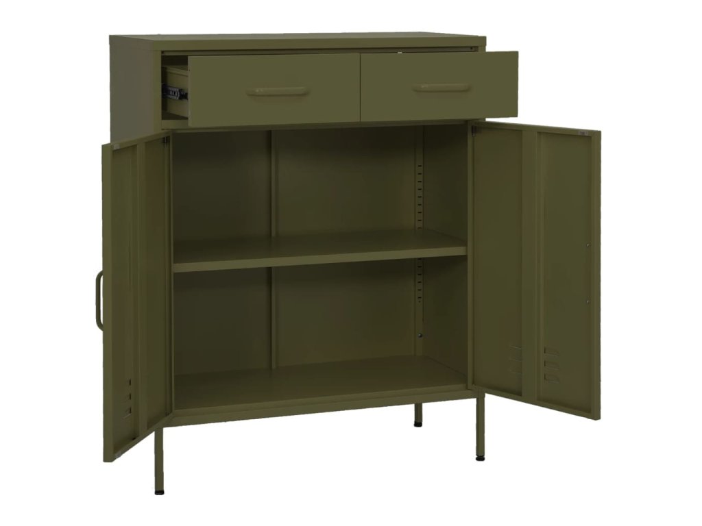 Tato úložná skříň je vyrobena z oceli, je tedy pevná a stabilní. Police poskytují dostatek prostoru pro přehledné uložení DVD, multimediálních zařízení, knih a drobných nezbytností, které chcete mít po ruce. Zásuvky s třídílnými pojezdy s kuličkovými ložisky zajišťují plynulé otevírání a zavírání. I při zvýšené zátěži lze tyto zásuvky zcela vysunout. Skříňka se snadno čistí vlhkým hadříkem.
