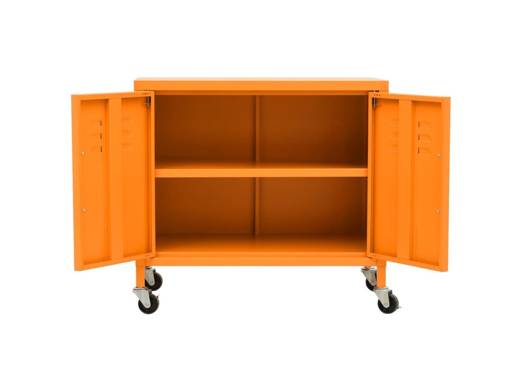Tato úložná skříň je vyrobena z oceli, takže je pevná a stabilní. Nastavitelná police poskytuje dostatek úložného prostoru, kde budete mít vaše DVD, multimediální zařízení, knihy a drobné nezbytnosti přehledně uspořádané a po ruce. Skříň je vybavena 4 kolečky pro snadné přemisťování. 2 přední kolečka jsou opatřeny brzdami, aby se zamezilo nechtěnému pohybu skříňky. Skříň se snadno čistí vlhkým hadříkem.