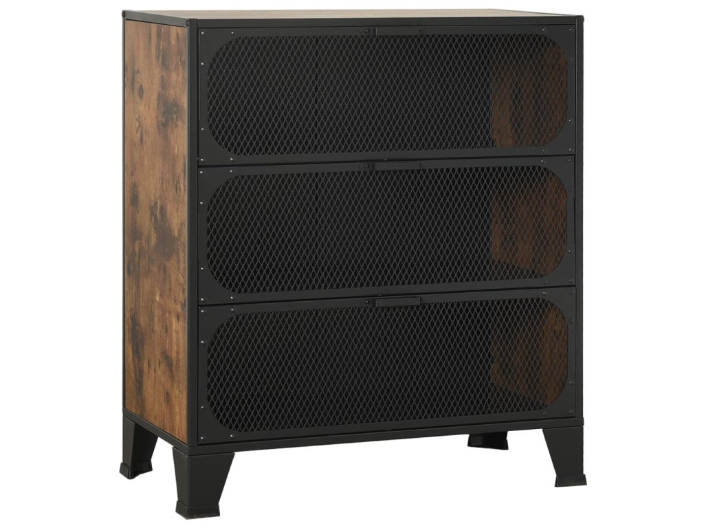 Tato úložná skříň je vyrobena z kovu a MDF, takže je pevná a stabilní. Uvnitř má 2 police, které poskytují dostatek prostoru pro přehledné uložení DVD, multimediálních zařízení, knih a drobných nezbytností, které chcete mít po ruce. Tato skříň s kováním a mřížkovými dvířky dodá vašemu obývacímu pokoji nebo ložnici městský industriální nádech. Navíc se snadno čistí vlhkým hadříkem.