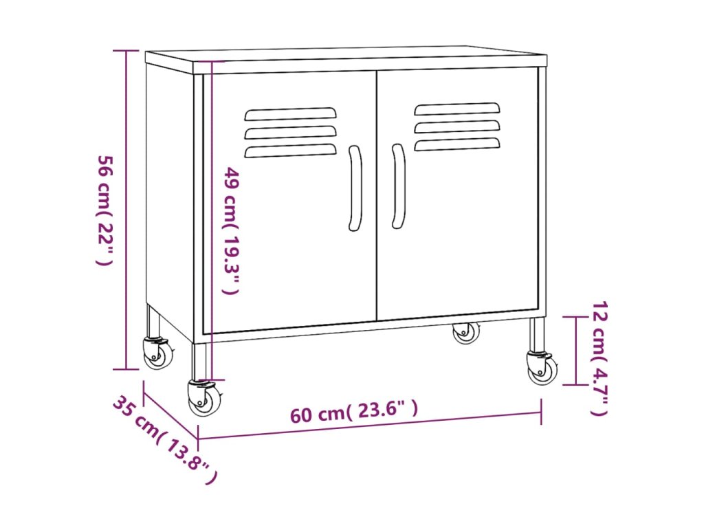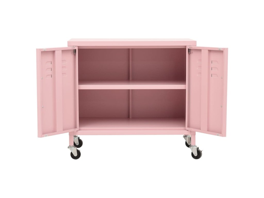 Tato úložná skříň je vyrobena z oceli, takže je pevná a stabilní. Nastavitelná police poskytuje dostatek úložného prostoru, kde budete mít vaše DVD, multimediální zařízení, knihy a drobné nezbytnosti přehledně uspořádané a po ruce. Skříň je vybavena 4 kolečky pro snadné přemisťování. 2 přední kolečka jsou opatřeny brzdami, aby se zamezilo nechtěnému pohybu skříňky. Skříň se snadno čistí vlhkým hadříkem.