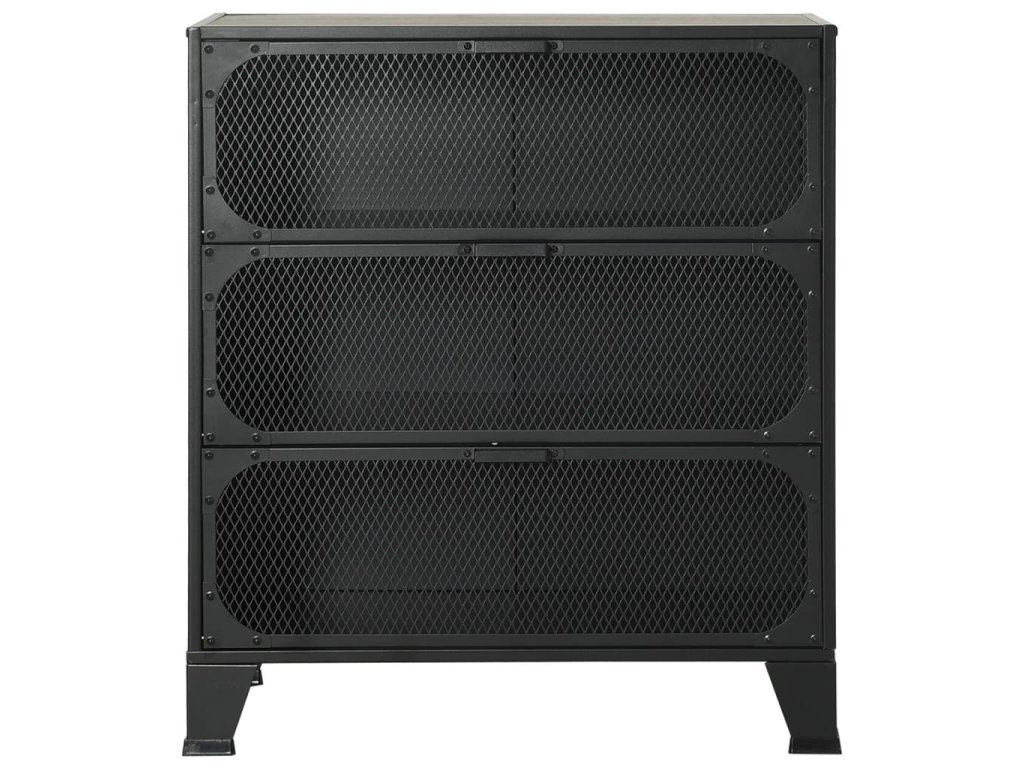 Tato úložná skříň je vyrobena z kovu a MDF, takže je pevná a stabilní. Uvnitř má 2 police, které poskytují dostatek prostoru pro přehledné uložení DVD, multimediálních zařízení, knih a drobných nezbytností, které chcete mít po ruce. Tato skříň s kováním a mřížkovými dvířky dodá vašemu obývacímu pokoji nebo ložnici městský industriální nádech. Navíc se snadno čistí vlhkým hadříkem.