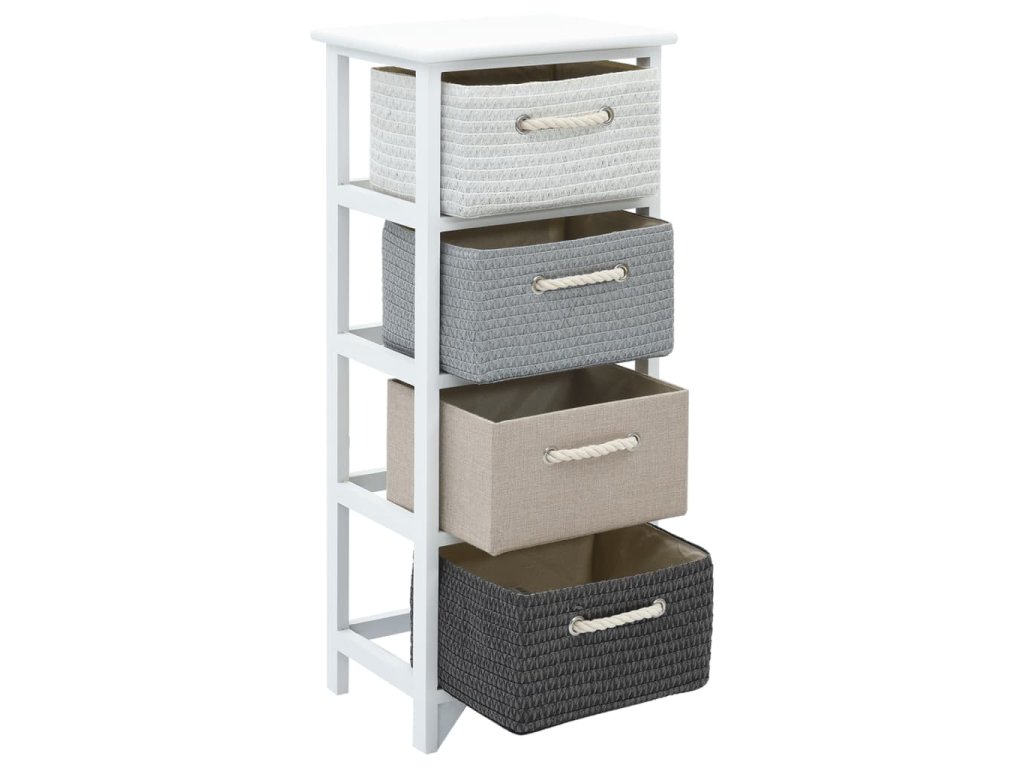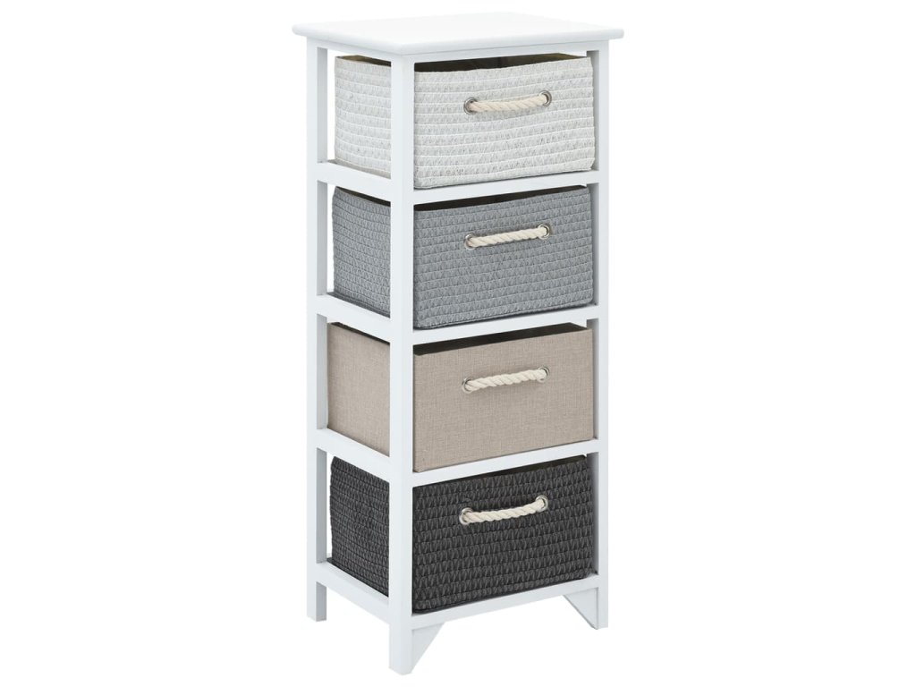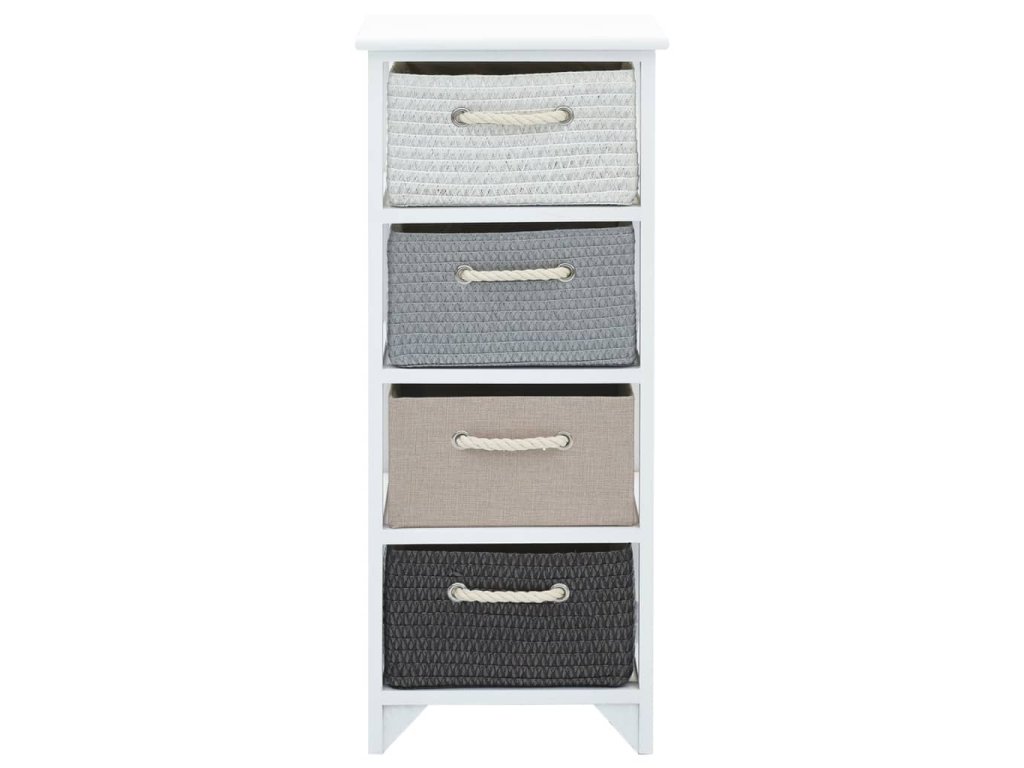 Tato skříňka má 4 zásuvky, navíc poskytují dostatek prostoru pro přehledné uložení menších věcí na dosah ruky. Zásuvky jsou opatřené provazovými úchytkami ve venkovském stylu. Zásuvky se dají mezi sebou vyměňovat.