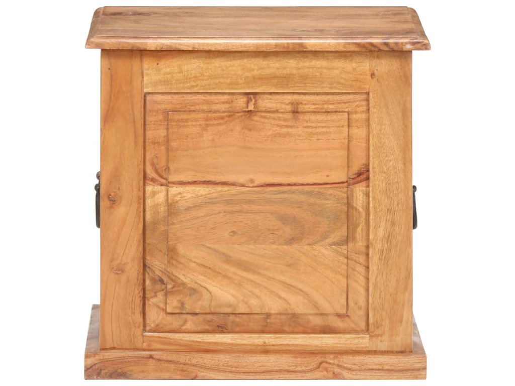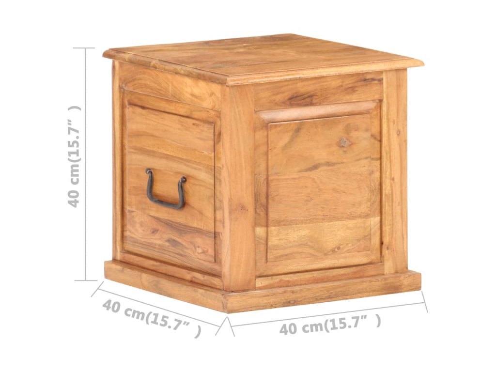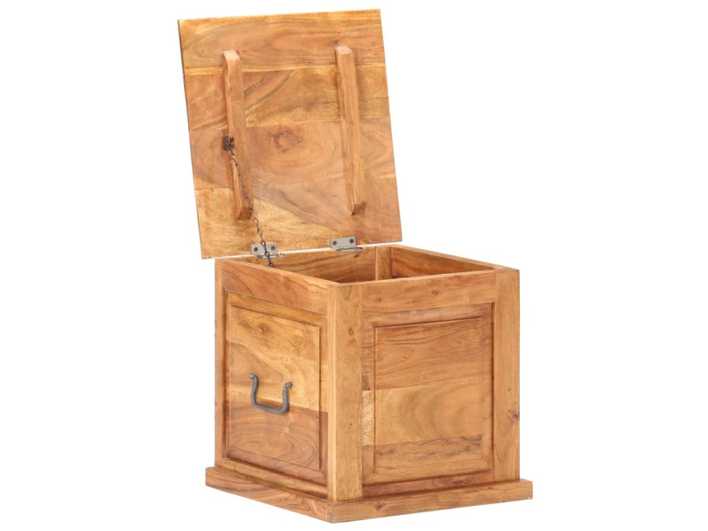 Tato truhla je vyrobená z masivní akácie, tropického tvrdého dřeva, které je stabilní a má dlouhou životnost. Má dvě rukojeti pro snadné zvednutí a přenášení. Tento úložný box se stabilní plochou horní deskou lze také používat jako noční stolek. Řemeslné zpracování a krásná dřevěná kresba dává každému kusu nábytku jedinečný a od všech ostatních mírně odlišný charakter.
