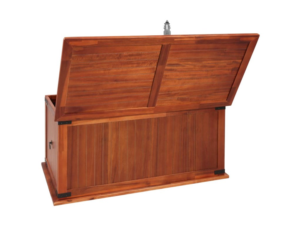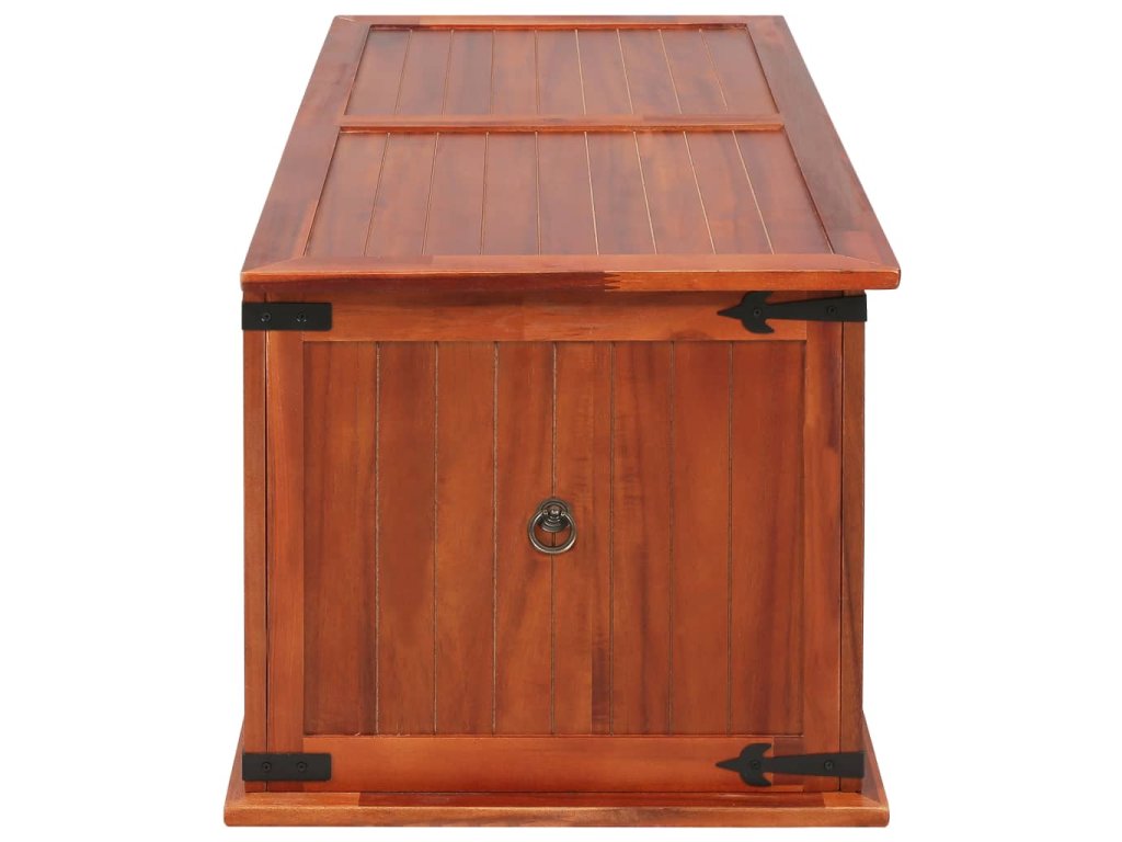Úložný box vám poskytne spoustu místa, kam si můžete uložit své oblečení, časopisy, knížky, hračky, nářadí a další věci. Na přední straně má západku, zatímco boční strany jsou opatřeny úchytkami. Horní víko dřevěné truhly tvoří pevná deska, můžete ji tedy rovněž využít jako konferenční stolek, stolek k pohovce, stolek do obývacího pokoje, odkládací stolek, přístavný stolek apod. Box je ručně vyroben z masivního akáciového dřeva. Zručné zpracování a překrásná kresba dřeva navíc činí každý kus nábytku zcela jedinečným a lehce odlišným od ostatních.