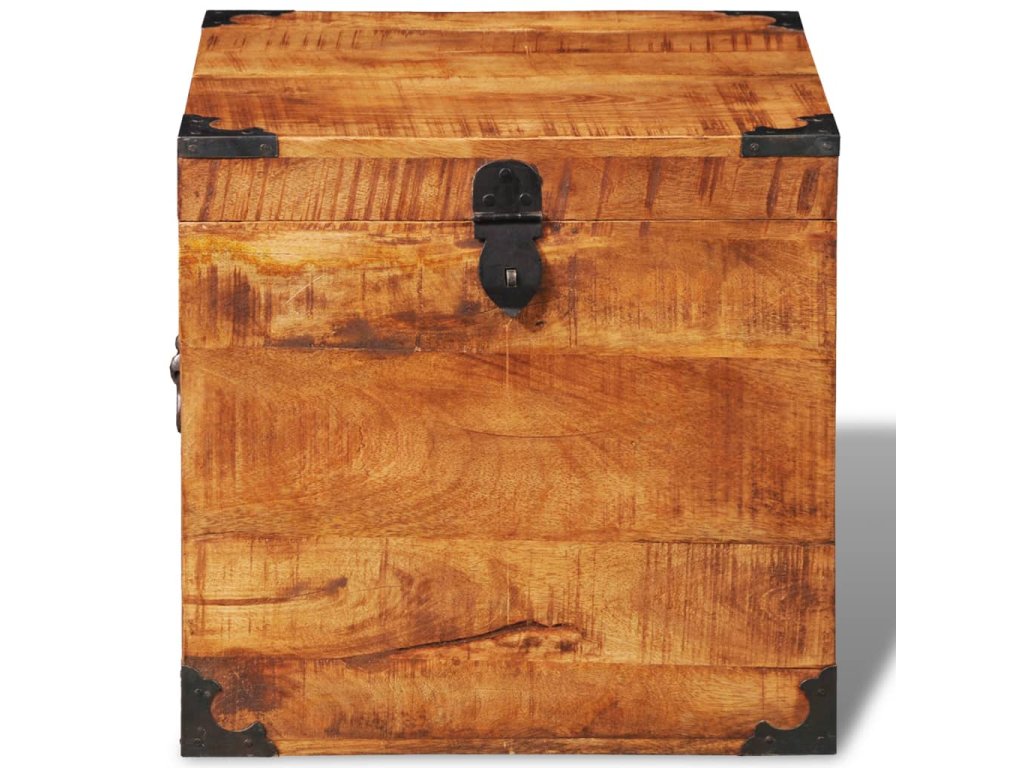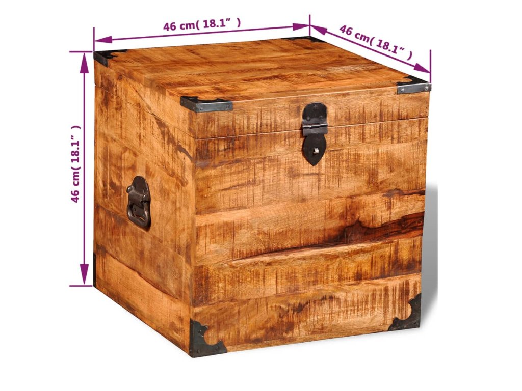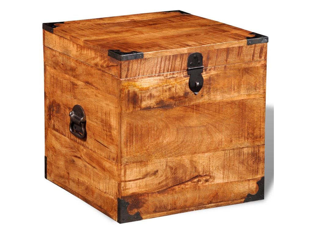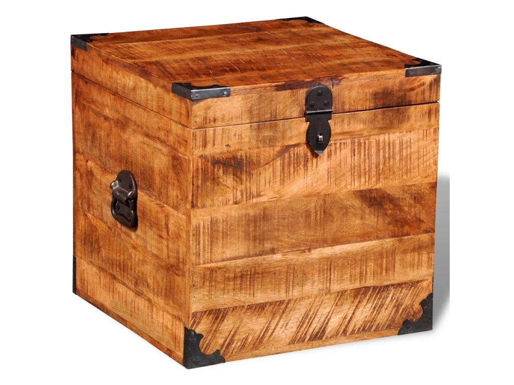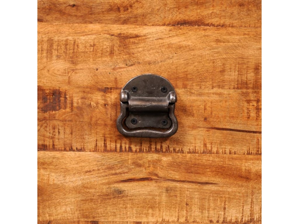 Tato truhla je celá vyrobena ručně z masivního dřeva, což znamená, že každý kus je jedinečný a lehce se odlišuje od ostatních. Drsné mangovníkové dřevo je solidní, pevné, odolné a krásné.