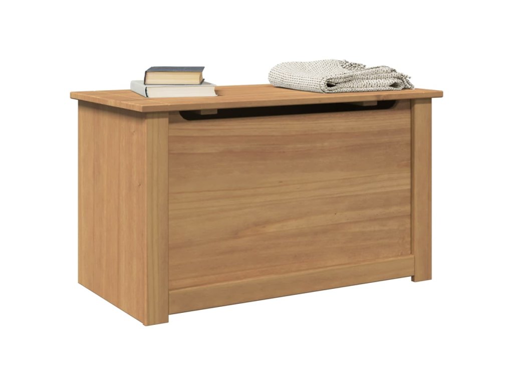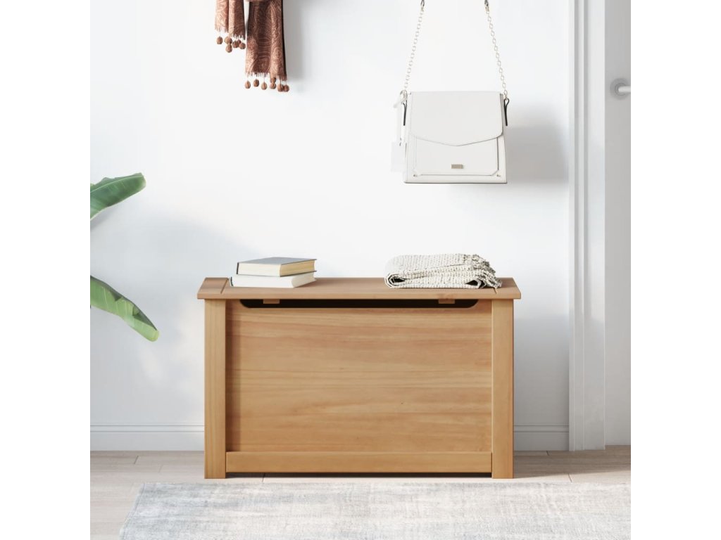 Tato dřevěná truhla s víkem je ideálním úložným řešením pro váš obytný prostor.
