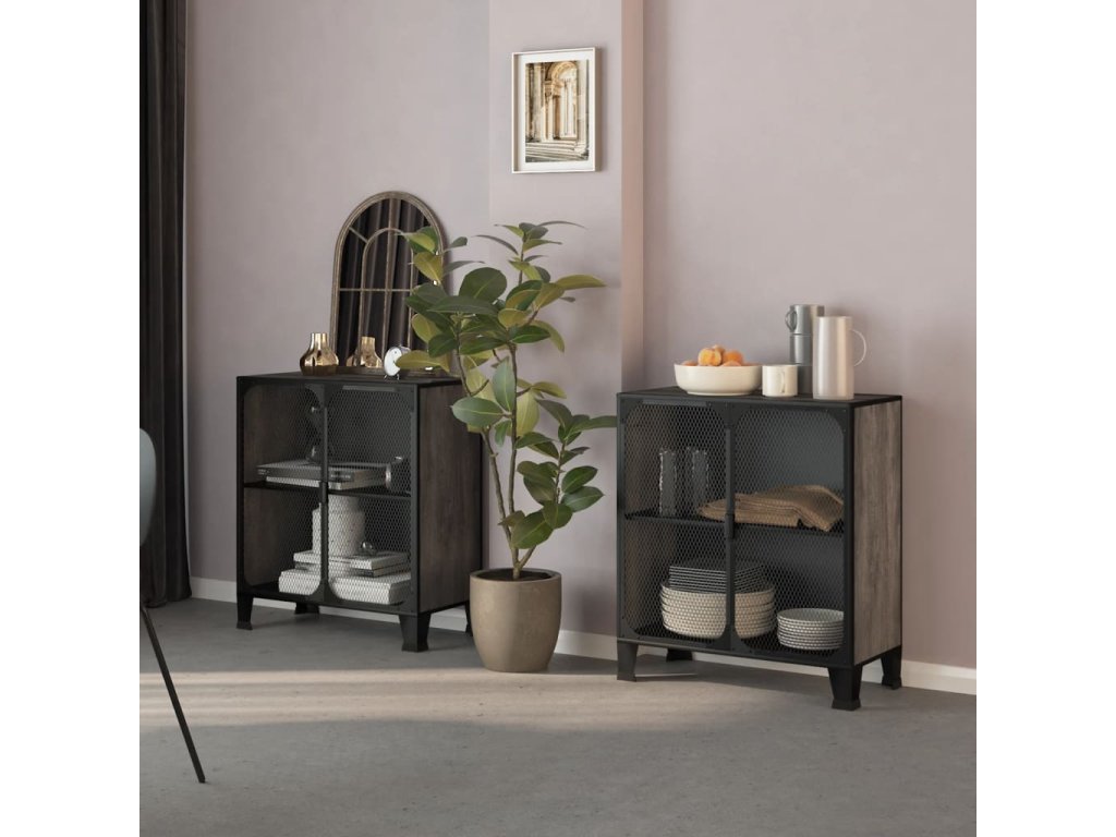Tato úložná skříň je vyrobena z kovu a MDF, takže je pevná a stabilní. Uvnitř má polici, která poskytuje dostatek prostoru pro přehledné uložení DVD, multimediálních zařízení, knih a drobných nezbytností, které chcete mít po ruce. Tato skříň s kováním a mřížkovými dvířky dodá vašemu obývacímu pokoji nebo ložnici městský industriální nádech. Navíc se snadno čistí vlhkým hadříkem.