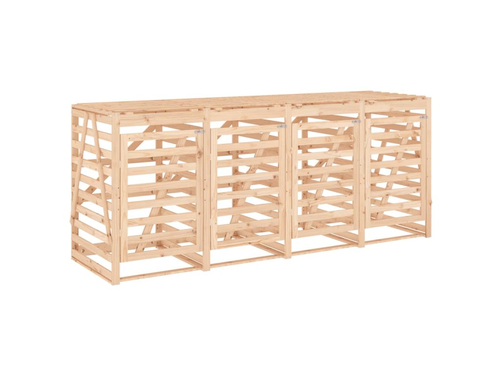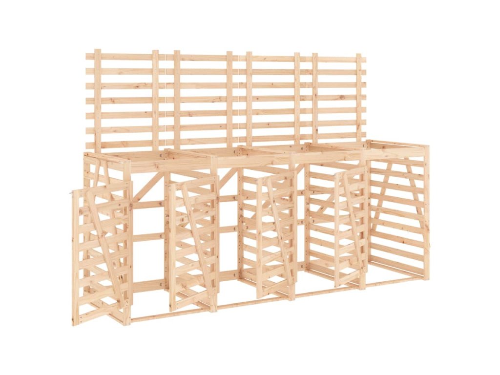 - Masivní borové dřevo: Zahradní box na popelnice je vyroben z masivního borového dřeva, které zajišťuje pevnost a odolnost. Masivní borové dřevo je krásný přírodní materiál. Borové dřevo má rovnou kresbu a obsahuje suky, které materiálu dodávají jeho charakteristický, rustikální vzhled.