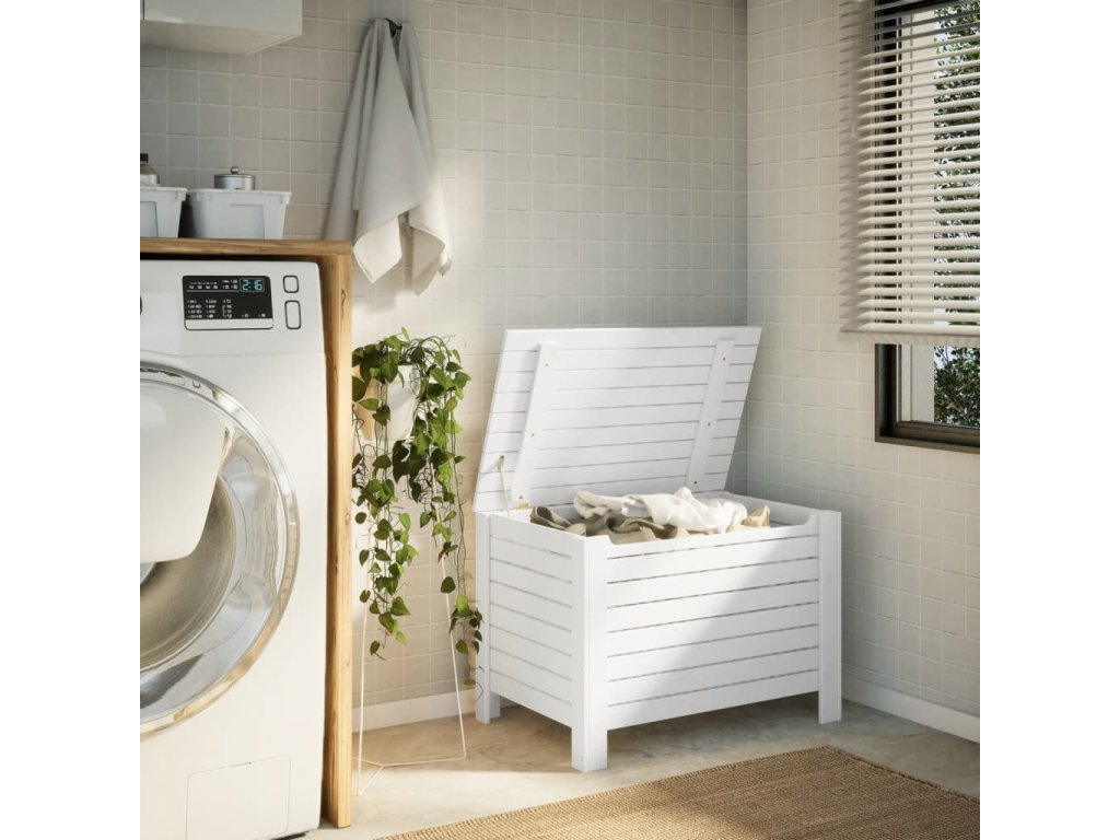 - Lamelové provedení: Lamelový design umožňuje dobré větrání věcí uvnitř úložné truhly.