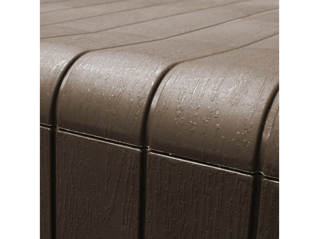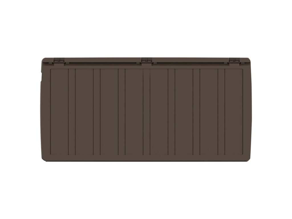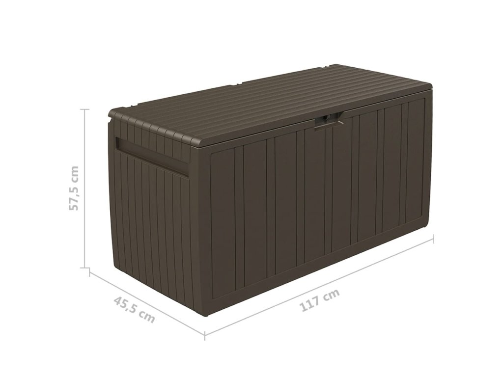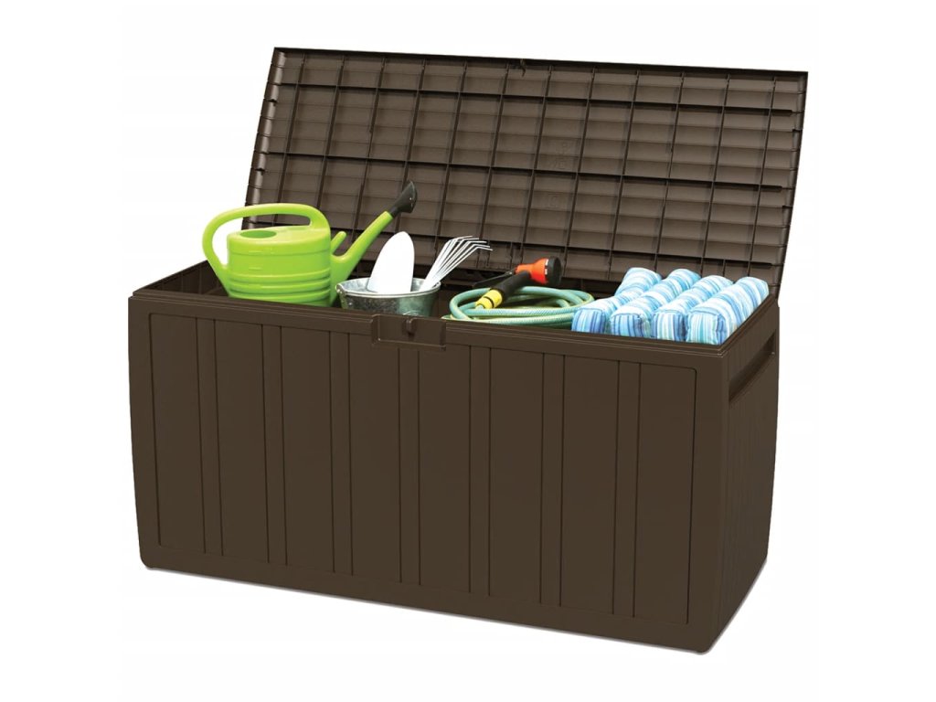 Pomocí praktické rukojeti se tato úložná truhla snadno přesouvá. Je vyrobená z PP, takže se snadno čistí. Uvnitř boxu najdete dostatek úložného prostoru a jakmile ho naplníte, můžete na něj položit polštáře a přeměnit ho na pohodlnou lavici. Box lze umístit také k bazénu a uschovat v něm hračky, nafukovací matrace a další předměty. Navíc máte možnost uzamknout box visacím zámkem.