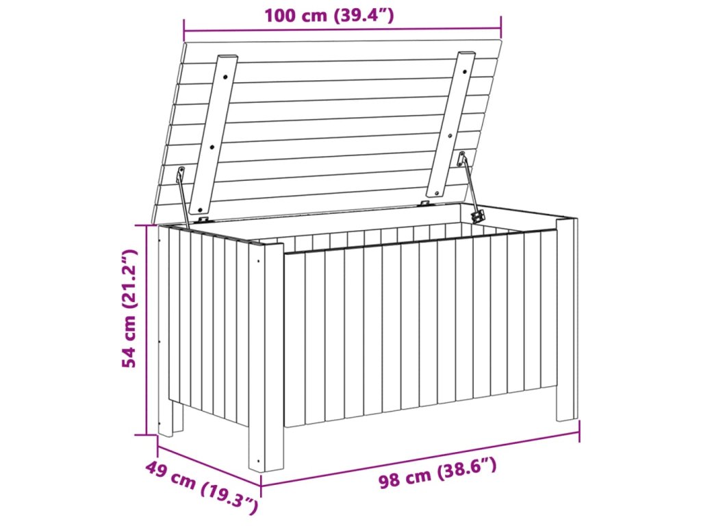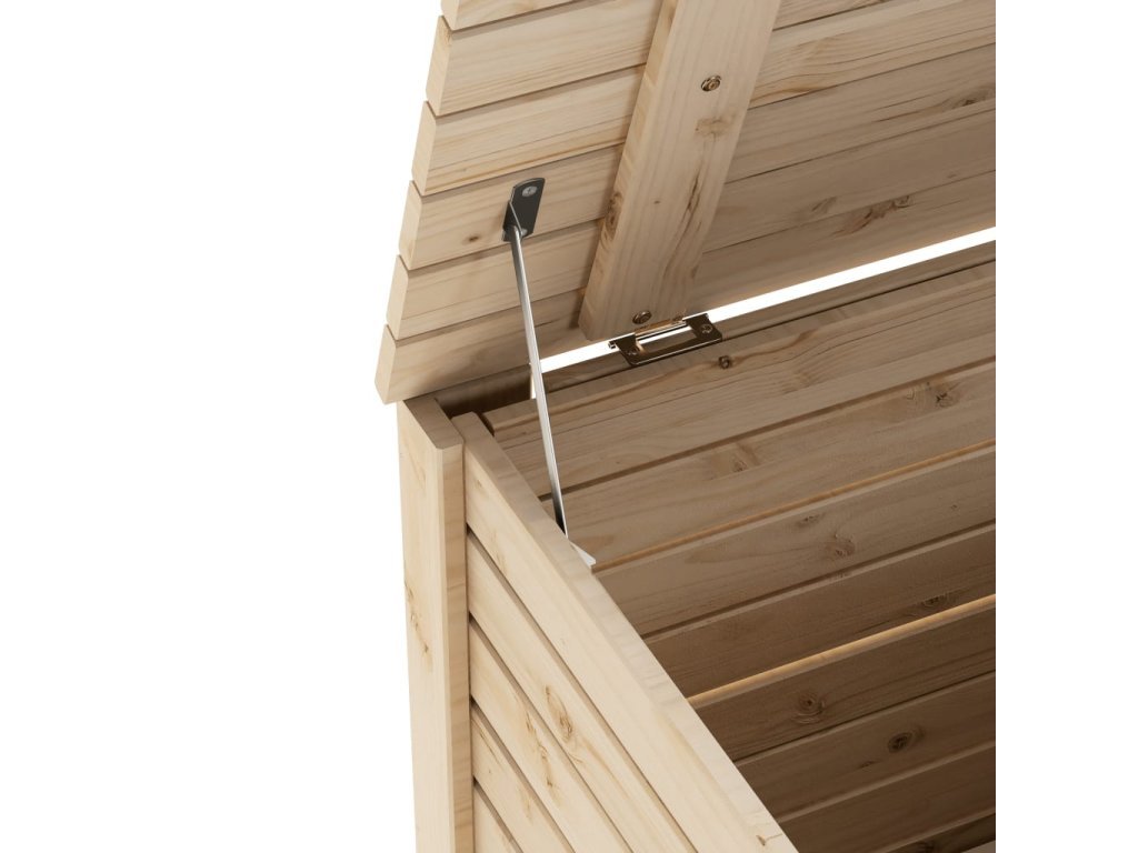 - Lamelové provedení: Lamelový design umožňuje dobré větrání věcí uvnitř úložné truhly.